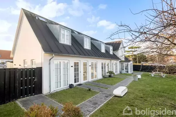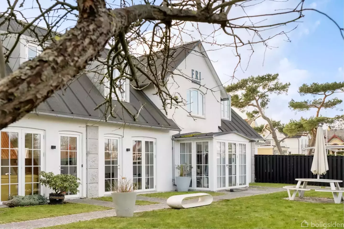Den russiske forfatter Lev Tolstoj skrev i ’Anna Karenina’, at alle lykkelige mennesker er lykkelige på samme måde. Tolstoj må have været en tur i Hornbæk, skulle man tro. Måske på grund af lyset, som også Holger Drachmann, P.S. Krøyer og andre fra tidens kreative klasse så og kom her for. Måske er det stranden, havet, plantagen, lyngen, klitterne eller byen, der altid føles som at tage en varm slåbrok på. Nuvel, ganske vist er det, at man skal gøre sig umage for at være sur i Hornbæk. Midt i Hornbæk står ejendommen ’Fri’ fra 1895 på AR Friis Vej 8, opkaldt efter Anna Regina Friis. Vejen hed tidligere Pensionatsvejen, for her byggede Anna Friis Hornbæks første helårspensionat. I det er det vejen til vel nok Sjællands bedste badestrand, til klitterne, caféerne, Det Fedtede Hjørne og restauranterne. ’Fri’ er bygget om til fritidsejerlejligheder, som nok er den nemmeste feriebolig, man kan få. Den store have er fælles med fælles parkering på grunden. Hver lejlighed har sin egen, private gårdhave. Alt spiller, alt er parat, alt står til rådighed uanset hvornår på året, man ønsker at få blæst håret igennem i klitterne eller få saltvand i ansigtet på stranden. Her er ikke meget at vedligeholde hverken ude eller inde. Lejligheden i nummer 8C er på 71 lækre m2 fordelt på 2 plan, eller 3, for hemsen på 2 sal er vel også et plan. Hornbæk er vågen hele året. Her bor næsten 4.000 faste indbyggere, og med bare 40 minutter fra København kommer sommerhusejerne her også om efteråret, vinteren og tidligt forår i korte og lange weekender, på helligdage og mindre ferier som påske og jul. Lyset har altid været noget særligt i Hornbæk, derfor kaldes den også for lysets by og den Nordsjællandske Riviera. Solnedgangen langt ude i Kattegat har altid tilskuere med et glas vin på stranden. Turen til strand og klitter er en gåtur på under ét minut, skoven, butikkerne, caféerne, restauranterne og indkøb ligger lige om hjørnet.
