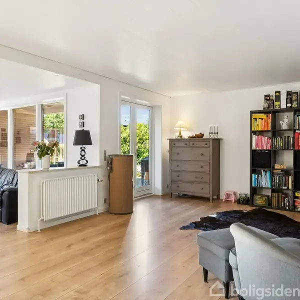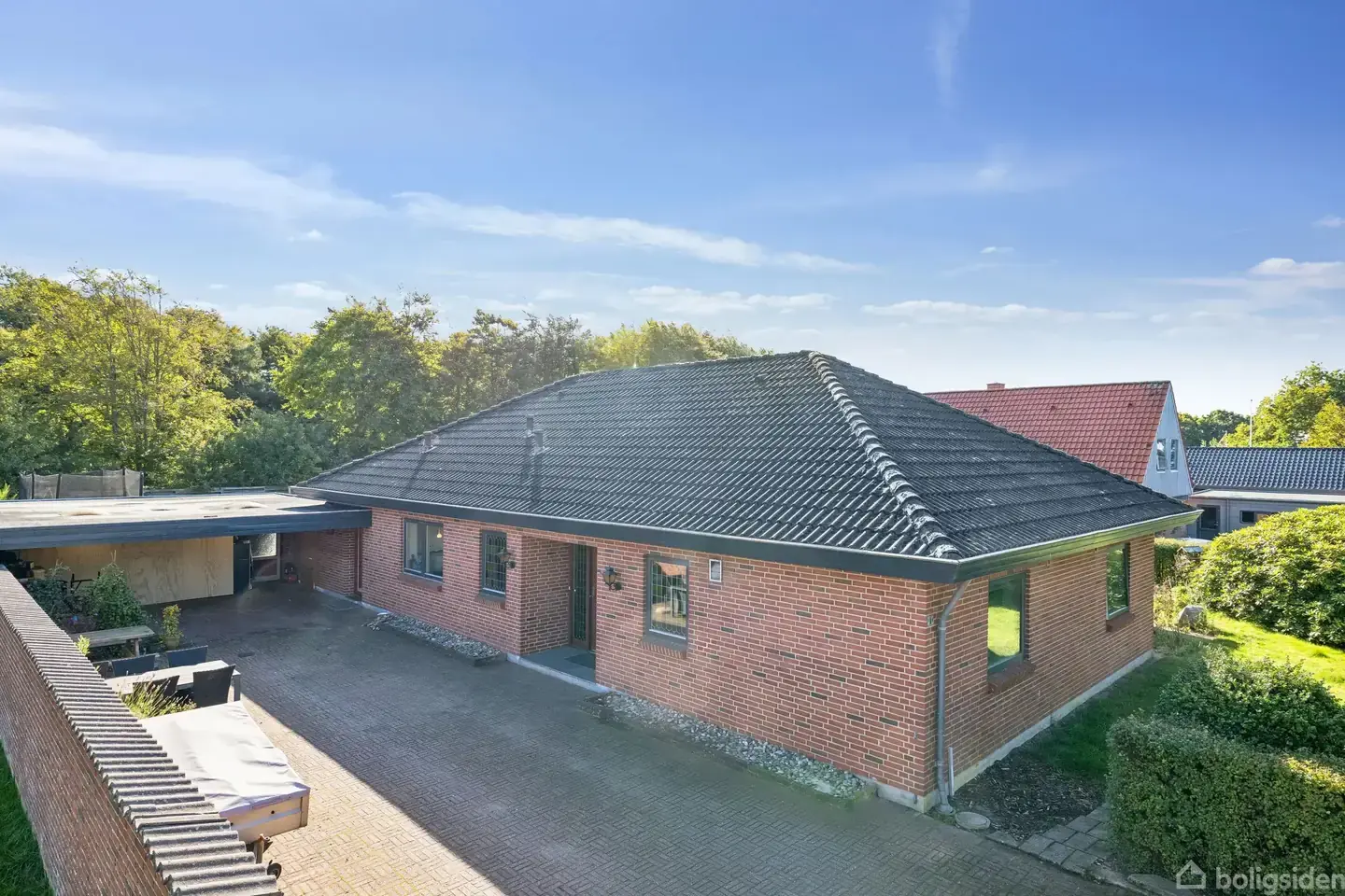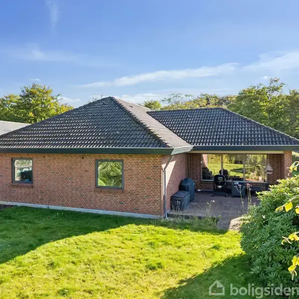 Velkommen indenfor Boligen byder velkommen i en rummelig entré med lyst klinkegulv og god plads til overtøj og sko. Herfra er der adgang til boligens to store stuer, som ligger i åben forbindelse og har direkte udgang til en hyggelig, overdækket terrasse. Det skaber en glidende overgang mellem hus og have, så hverdagen flyder let – og der er god plads til både familieliv og hyggelige sammenkomster. Køkkenet har lyst, malet inventar og god plads til madlavningen – Et lyst og praktisk køkken med et tidløst udtryk, der indbyder til både madlavning og samvær. Badeværelset er rummeligt med både badekar og bruseniche samt et lyst, hvidt vaskearrangement, og derudover finder du et gæstetoilet centralt placeret i huset. I den ene ende af huset finder du to gode værelser – begge med faste skabe og et dejligt lysindfald, som gør rummene ideelle som børneværelser, kontor eller gæsteværelser. I den modsatte ende ligger husets store soveværelse med indbyggede skabe og god plads til både dobbeltseng og ekstra opbevaring. Her er en fin fordeling, der giver plads og privatliv til hele familien. Dertil kommer et stort bryggers med lyst klinkegulv, som rummer både vaskefaciliteter og praktisk opbevaringsplads. Dobbelt carport og værksted Ejendommen har en integreret dobbelt carport med tilhørende værksted på i alt 56 m² – perfekt til hobby, opbevaring eller gør-det-selv-projekter. Alt fremstår pænt og velholdt. Skøn og velanlagt have Den 1.232 m² store grund er anlagt med sans for både funktion og æstetik. Her er en stor, flisebelagt indkørsel, flere solrige terrasser samt en grøn plæne omkranset af træer, buske og et imponerende rhododendronbed. Her kan du nyde sommerdage i fred og ro – og børnene har god plads til leg og boldspil. Attraktiv beliggenhed med natur og byliv side om side Beliggenheden på Åbakkevej er noget helt særligt – her får du natur og byliv i perfekt balance. For enden af vejen finder du Engsøen – et fortryllende naturområde med smukke ruter langs vandet og grønne omgivelser, hvor du kan nyde gåture, løbeture eller bare et roligt åndehul midt i hverdagen. Efter kun fem minutter på cykel når du flere dagligvarebutikker som Lidl, Netto, Rema1000 og Kvickly, og i bymidten finder du både butikker, spisesteder og et aktivt byliv med hyggelige arrangementer året rundt. Har du skolebørn, er der kun cirka fire minutter på cykel til Vestre Skole, og for de mindste ligger Børnenes Univers også inden for kort afstand. Pendler du, ligger Billund kun 14 km væk – så du er tæt på både arbejde, natur og byliv. Kort sagt: Åbakkevej 11 er en solid, rummelig og veldisponeret villa med skøn have og en attraktiv beliggenhed tæt på både natur, skole og by. Et ideelt hjem for familien, der ønsker plads, ro og trygge rammer i hverdagen. Skal vi også hjælpe dig med at BoGodt? Så ring allerede i dag på tlf. 92907200.