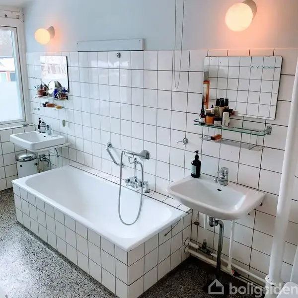 Familievenlig bolig i attraktive Åbrinken Dette velindrettede og arkitekttegnede rækkehus fra 1956 ligger i det eftertragtede og børnevenlige Åbrinken og tilbyder en gennemtænkt ramme om familielivet. Boligen rummer 136 m² fordelt på to etager med i alt 5 værelser, hvilket giver god plads til både fælles ophold og privatliv. Huset fremstår indflytningsklart og med tydelig respekt for den oprindelige arkitektur. Stueetagen samler hjemmet i et stort stue/køkken/alrum, hvor der er god plads til både hverdag og samvær. Planløsningen er funktionel og udnytter kvadratmeterne optimalt, understøttet af flere indbyggede skabe, som bidrager til et roligt og sammenhængende udtryk. På førstesalen er de fire gode værelser samlet, og her opleves en særlig rumfornemmelse med loft til kip på hele 3,5 meter, som giver et markant lysindfald og en åben atmosfære. Det originale badeværelse med terrazzo er bevaret og understreger husets karakter og historie, mens køkkenet er holdt i en klassisk stil og nænsomt opdateret. Grunden på 237 m² er overskuelig og veludnyttet. Haven byder på en stor terrasse med plads til udeliv og grill, områder til leg med sandkasse og trampolin samt plantebede, bærbuske og frugttræer, herunder blommetræ og æbletræ i forhaven. Den nye elektriske sauna fra 2024 giver mulighed for afslapning og wellness i egen have og forlænger udesæsonen. Til ejendommen hører desuden en 40 m² stor garage, som i dag er indrettet med vaskerum og et rummeligt opbevaringsareal med plads til ladcykel, mountainbikes og andet fritidsudstyr. Området er velegnet til børnefamilier med Kongevejens Skole samt Brede Børnehave og Åkanden tæt på. Her får I et rækkehus med sjæl, funktionalitet og en beliggenhed, der understøtter en tryg og aktiv hverdag.