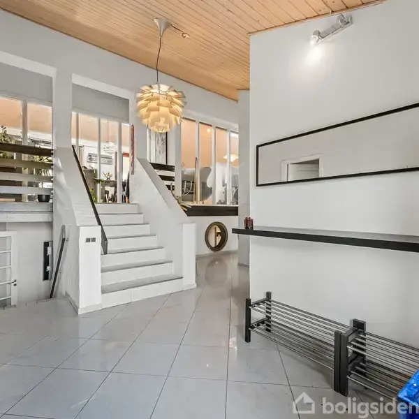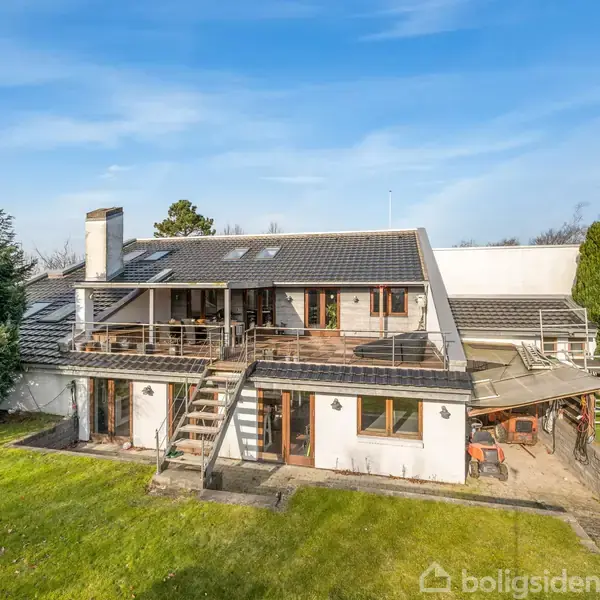 En unik bolig med uanede muligheder. Sjældent udbudt bolig, hvor arkitektur og funktionelle løsninger er mundet ud i en villa, hvor der er plads til både familie og erhverv. Her er rummelighed, fællesskab og mulighed for at finde ro i perfekte rammer tæt på skov, legeplads og naturen ved Skjern Å. Indretning: Forskudte plan giver både let og spændende rumfordeling i hele boligen. 1. salen har højt til loftet og med de nyere ovenlysvinduer skabes et flot og spændende lysindfald til hele køkkenet og stuen. I kommer ind i entréen, hvor man allerede fornemmer husets spændende arkitektoniske valg. Herfra går man op i stuen og det åbne køkkenalrum, hvor vægten er lagt på fællesskab, komfort og spændende løsninger. Fra rummet er det flot udsigt til området, og udgang til overdækket terrasse, hvor udelivet kan nydes i fulde drag. Fra stuen er der adgang til særskilt kontor, som også kan indrettes til f.eks. TV-stue ell. lign. I modsatte ende har man omdannet husets garage til et funktionelt multirum, hvor der er plads til f.eks. hjemmebiograf eller bordtennis. Herfra er der adgang til brygges med plads til installation af vaskemaskine m.m. og her er også toilet og teknik installationer. I stueplan finder I tre værelser, walk-in closet, badeværelse og her er egen indgang. Tilmed er der indrettet eksklusivt spa- og fitnessområde med sauna. Nyd træningen og tag et dyp i spabadet - og nyd udsigten til haven. Kælderen er indrettet med soveværelse med eget rummeligt badeværelse samt et stort værelse. Udenfor venter både lukket have, hyggekroge og ikke mindst den overdækkede terrasse, som gør det muligt at forlænge udendørslivet. Dertil redskabsrum til opbevaring. Denne villa byder på mange spændende løsninger, og her er gode muligheder for at udleve sin boligdrøm. Beliggenheden er på lukket stikvej, tæt på skov, stisystemer til skoler og indkøbsmuligheder. En absolut spændende bolig, med plads til både familie og venner. Book din fremvisning og lad os vise dig mulighederne.