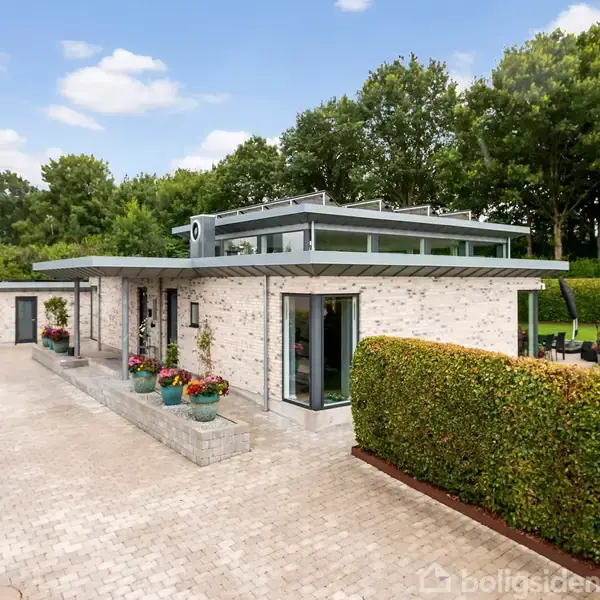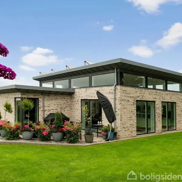Denne unikke funkisvilla ligger ugeneret for enden af en lukket vej og byder på en eksklusiv kombination af moderne design og funktionalitet. Haven er anlagt med cortenstål og indfarvet træflis, hvilket skaber et stilrent udtryk og kræver minimal vedligeholdelse – perfekt til den travle familie. Siden 2021 har villaen gennemgået en omfattende opgradering og fremstår nu i absolut topklasse. Når man træder ind i det rummelige køkken-alrum og stue, fornemmes en let og luftig atmosfære, der straks bringer ro efter en hektisk arbejdsdag. Køkkenet er både rummeligt og praktisk indrettet, mens badeværelset tilbyder god plads samt en integreret vaskesøjle. Den minimalistiske indretning, kombineret med elegante skydedørsløsninger, sikrer et stilrent look – selv i en travl hverdag. Villaen er en nul-energivilla, opvarmet med en effektiv luft-til-vand varmepumpe fra 2021 samt en supplerende luft-til-luft varmepumpe i stuen, der både kan give ekstra varme på kolde vinterdage og køling om sommeren. Med en avanceret solcelle- og batteriløsning producerer villaen præcis den energi, den forbruger, hvilket resulterer i et årligt energi-/elforbrug på blot 4.000-8.000 DKK. Den rummelige garage giver rig mulighed for kreative projekter eller gør-det-selv-arbejde. Denne villa skal opleves!
