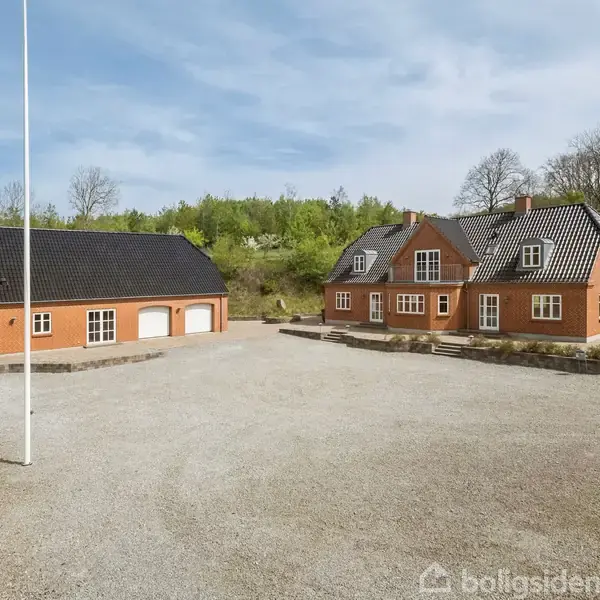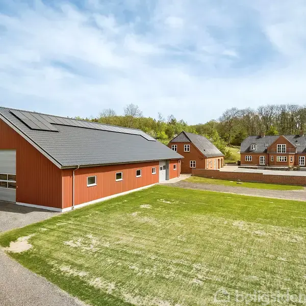 Åbent hus med tilmeldingskrav 4/2 - klik på billede - Denne enestående ejendom kombinerer naturskønne omgivelser, moderne komfort og et stærkt potentiale for både privatbolig og erhverv. Beliggende nær Sæby – kun ca. 35 minutters kørsel fra Aalborg, ca. 10 minutter til Sæby og 15 minutter til Frederikshavn – tilbyder "Rosenshave" alt, hvad man kan ønske sig: ro, kvalitet og muligheder. Ejendommen rummer hele 28,5 hektar jord, inkl. 7,3 ha fredskov, to idylliske søer og Sæby Å, som slynger sig gennem grunden og giver fremragende fiskemuligheder. Den formidable jagt på både krondyr og dådyr gør stedet til et sandt paradis for naturelskere og jægere. Ejendommen er oplagt til erhvervsbrug, fx liberalt erhverv, jagt- og naturophold, retreats, kursus- eller mødeaktiviteter – takket være de mange kvadratmeter, de adskilte bygninger og den særdeles ugenert beliggenhed. Hovedbygningen er opført i 2008 i klassisk stil og med stort fokus på kvalitet. Hele 296 m² bolig byder på gulvvarme i stueplan og er indrettet med et lyst og indbydende bryggers, en imponerende entré med trappe til 1. sal, og et stort, lyst køkken/alrum med klinkegulv og udgang til en sydvendt terrasse. Alrummet er hjertet i hjemmet – herfra er der dobbelte franske døre til en rummelig stue med brændeovn og trægulve, hvor hyggen breder sig naturligt. Stueplan rummer desuden 2 værelser samt et flot badeværelse med brus. På 1. sal finder man en stor repos/stue med udgang til balkon med lækker udsigt over det kuperede landskab, to meget store gavlværelser, et ekstra værelse samt et luksuriøst badeværelse med både brus og kar. Derudover et disponibelt rum med mange anvendelsesmuligheder. Sidebygningen på 163 m² matcher hovedhusets stil og funktionalitet. Her er dobbelt garage med el-porte, stort køkken, badeværelse og adgang til en rummelig gildesal, der nemt kan integreres med garagen via foldedøre. En trappe fører op til 1. salen, som rummer 116 m² og snildt kan anvendes til kontor eller andre formål. Vest for garagen ligger en højloftet lade på 378 m² med høje porte og isoleret værksted samt nyere opsat troldtektlofter i garagedelen – perfekt til både opbevaring, produktion eller hobbyaktiviteter. Ejendommen har et virkeligt flot energimærke A2020, lavt energiforbrug, jordvarme og et 6 kWh solcelleanlæg. Med muligheden for flerfamiliebolig eller bofællesskab, en naturskøn beliggenhed og stærke erhvervsmuligheder er "Rosenshave" en sjælden perle for den kvalitetsbevidste køber.