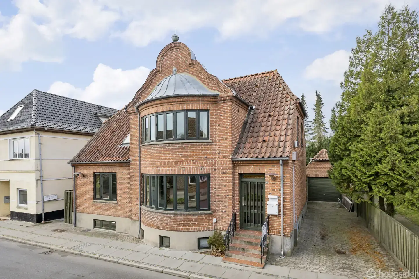Markant og yderst rummelig villa med central beliggenhed og stort anvendelsespotentialePå Aagade 8 udbydes denne særdeles rummelige villa, der med hele 248 m² boligareal samt 112 m² kælder tilbyder et usædvanligt stort pladsudbud og en høj grad af fleksibilitet. Ejendommen er opført i 1931 og løbende vedligeholdt samt delvist moderniseret, hvilket giver et solidt udgangspunkt for både indflytning og videre udvikling.Boligen rummer en funktionel og anvendelig planløsning med mulighed for etableri