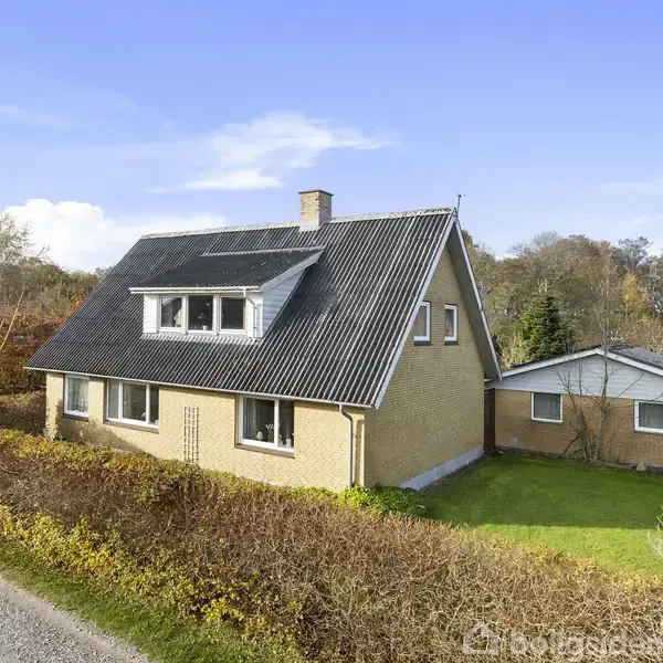 Her får du en sjældent udbudt mulighed for at erhverve en villa med en højt beliggende grund på hele 3.326 m2. Grunden skråner smukt ned til åen og man har et meget langt areal langs åen. Her har man mulighed for at sejle direkte fra havet og op til grunden. Den store grund er præget af frodig natur og gamle træer. – et fredfyldt og naturskønt sted, hvor du kan nyde roen og udsigten til det glimtende vand. Villaen er opført i 1½ plan med 122 m² beboelse og 12 m² kælder og byder på en indretning