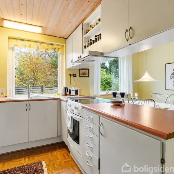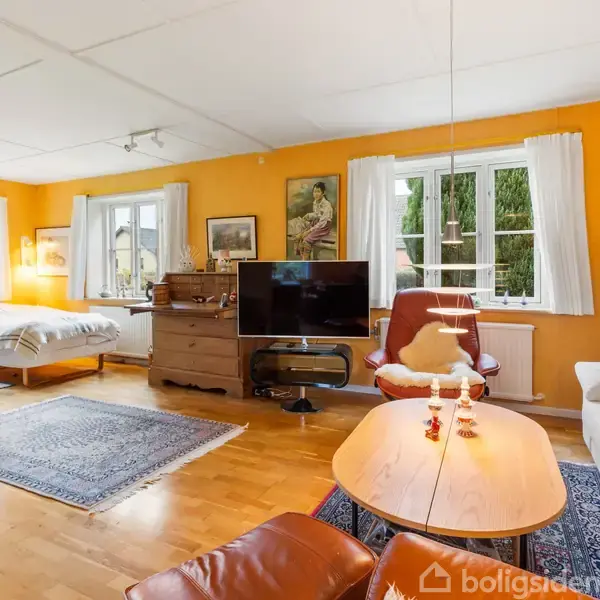 En villa fuld af muligheder midt i Østerlars landsbylivVelkommen til Østerlars, hvor denne iøjefaldende, røde villa hurtig gør sig bemærket ude fra vejen.Huset er en ældre sag med masser af charme og karakter, og her er plads til både det nære hverdagsliv og de store drømme. I træder indenfor i en entré, hvorfra der er adgang til et rummeligt badeværelse og et praktisk bryggers.Fortsætter I ind i boligen, åbner et stort opholdsrum sig med plads til både sofagruppe og spisebord, og i forlængelse,