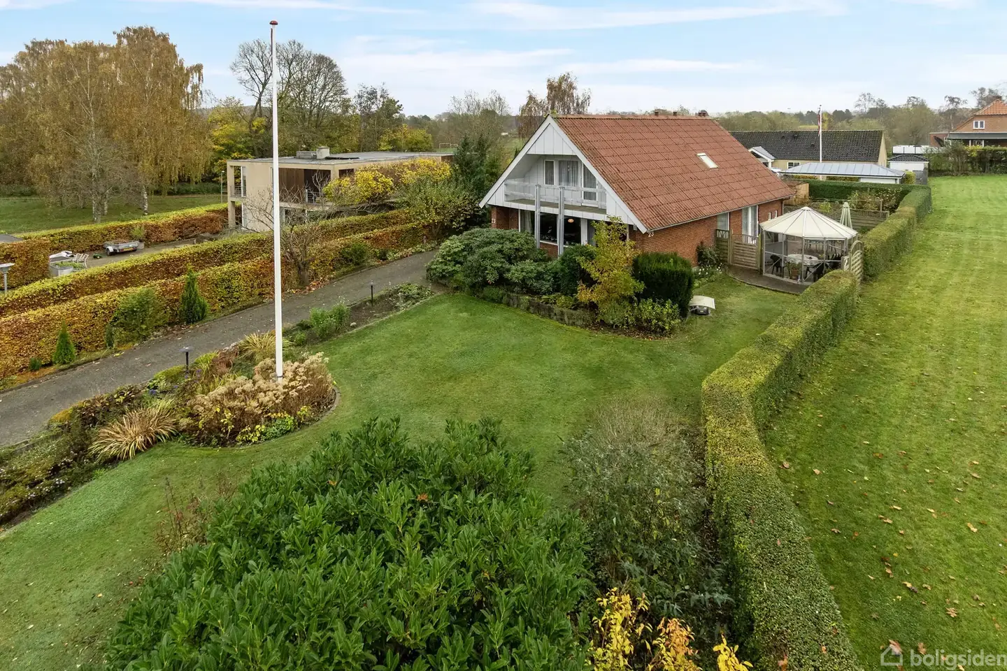 Nu kan I overtage nøglerne til 159 kvadratmeter ren boliglykke, der vil danne fundamentet for netop jeres boligdrømme. I får en dejlig villa i ægte 70’er-stil, hvor arkitekturen er velkendt, planløsningen velfungerende og mulighederne mange. Huset fremstår klassisk i ordets fineste forstand med sine røde mursten og sadeltag, der viser sig, som I triller ind ad indkørslen. Når bilen er parkeret i carporten, kan I med god grund vende blikket mod haven, der er overskuelig med beplantning og plæne,