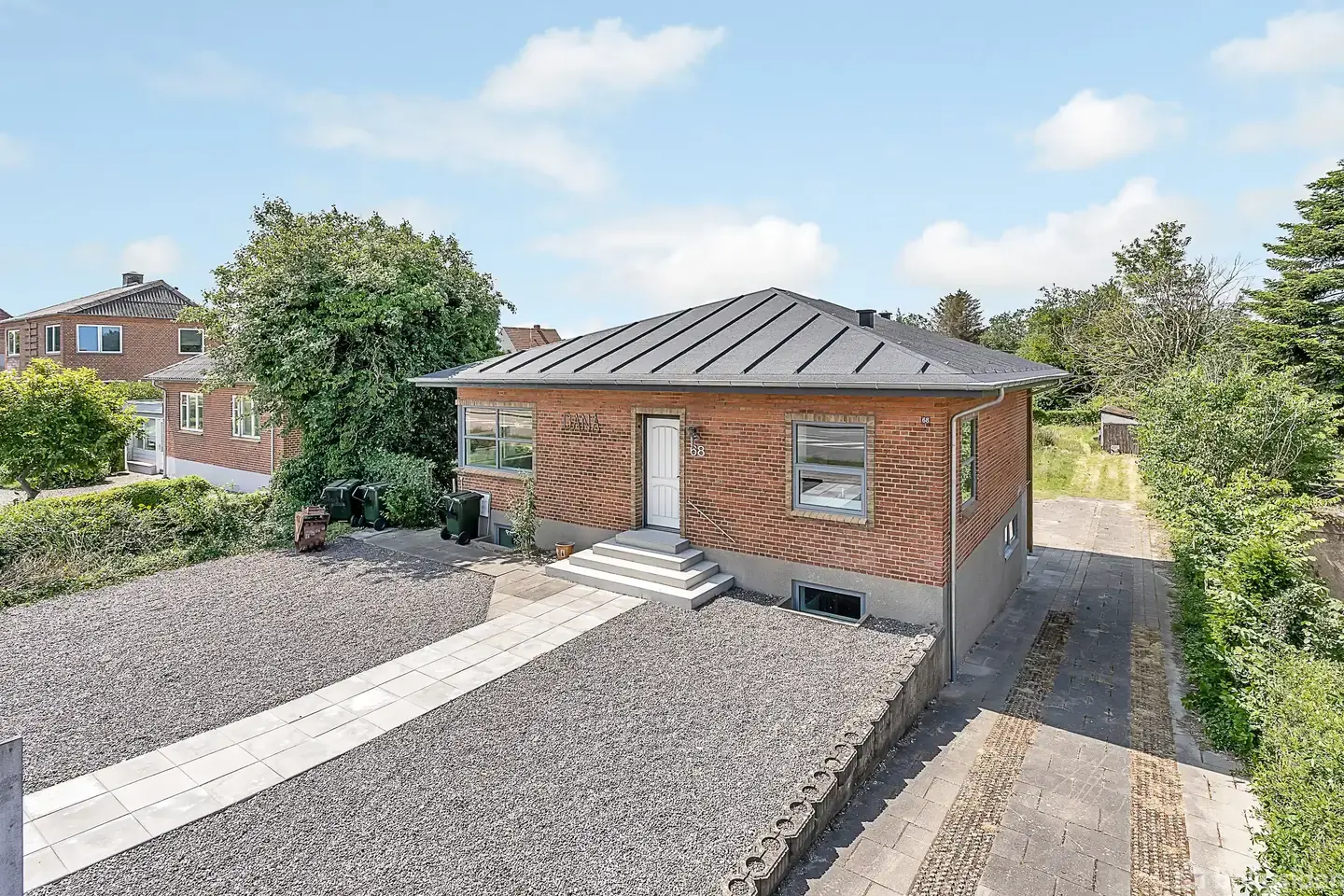 Her udbydes en nyrenoveret villa beliggende med kort afstand fra indkøb og skov.Denne ejendom har fået en stor renovering og fremstår lys, moderne og indflytningsklar. Ejendommens stueplan er indrettet med entré i åben forbindelse med nyt HTH-køkken, dejligt soveværelse, der vender mod haven og har udgang til overdækket terrasse. Flot lyst badeværelse med god bruseniche. Desuden rummer stueplan 3 stuer en suite, hvorfra der er udgang til overdækket terrasse fra den ene stue. Kælderen er velindr