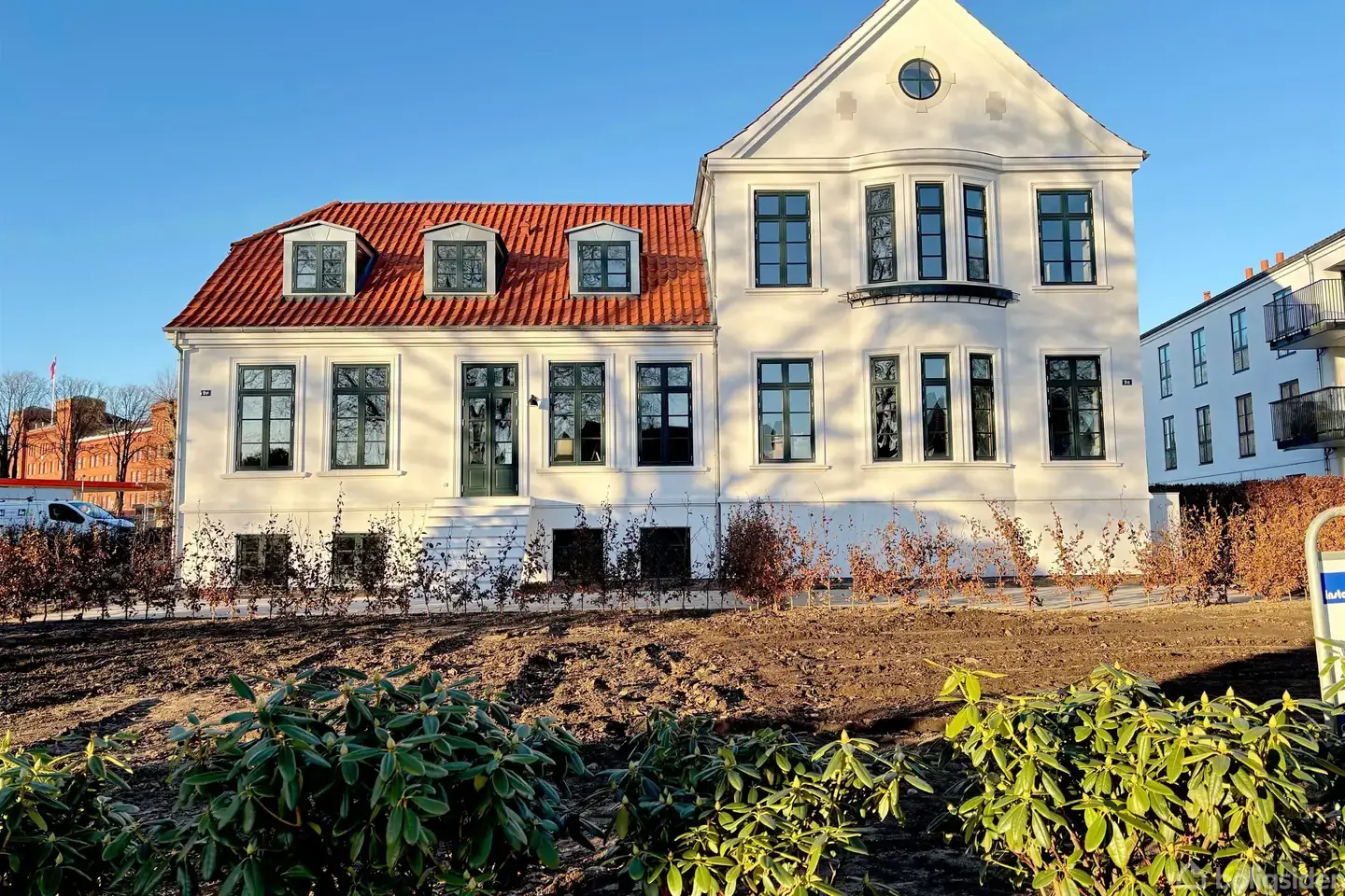 Skibsrederens hus blev oprindeligt opført i 1856 og blev sidenhen om- & tilbygget i 1916 og fremstår derefter et pragteksemplar af en ægte bevaringsværdig og imponerende herskabsvilla tæt på bykernen med den skønne Kløften Park som nabo. Villaen er med passion efterfølgende i perioden fra 2023 til 2026 igen blevet ombygget og nyfortolket og står i dag i en hel ny skikkelse med elegance og raffinement. Villaen er opdelt i to boliger og tilført alle moderne bekvemmeligheder og vor tids miljøstandarder for en ny beboelse. Villaen bærer fortsat præg af ånden og historien fra første halvdel af 1900-tallet med et varmt og indbydende miljø. Takket være bestræbelser på at genanvende og synliggøre materialer fra den periode. Villaen fremstår tip-top moderne og er desuden at sammenligne med et fuldt moderne hus, hvad angår f.eks. standard for isolering af gulve, lofter, vægge og vinduesglas. Underetagen er opgravet og isoleret for at give villaen et pladsmæssigt aktiv bl.a. med ny 60 cm. tyk gulvkonstruktion. Det indre af villaen er lige så imponerende som det ydre. De højloftede rum er rummelige og indrettet med tanke på komfort og funktionalitet. Denne villa rummer mere et blot et hjem - du får nemlig adgang til Kløften Park, der placerer dig både tæt på beroligende omgivelser og et stenkast fra et hyggeligt byliv. Du skal være klar til at indgå i et fællesskab med andre beboer, der har valgt lige netop det samme som dig selv - fællesskab i bebyggelsen og nærhed til byen. Denne villa fortæller en historie som rækker langt ind i fremtiden. Villaen sjæl er bevaret og detaljerne fra villaens begyndelse står fortsat helt klart.