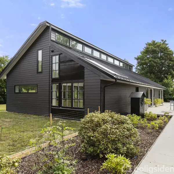 Unik arkitektvilla i Jyllinge Nordmark i første række til naturen ved Værebro Å Velkommen til Åvej 36, hvor en særlig ejendom venter jer i hjertet af Nordmarken. Her får I en unik beliggenhed direkte ud til det fredede område ved Værebro Å, hvor det moderne familiehjem smelter sammen med den omgivende natur. Villaen fremstår med stilfuld facade i vedligeholdelsesfri fibercement planker med træstruktur, og et karakteristisk tag med stor hældning, der fremhæver de arkitektoniske linjer og det mod