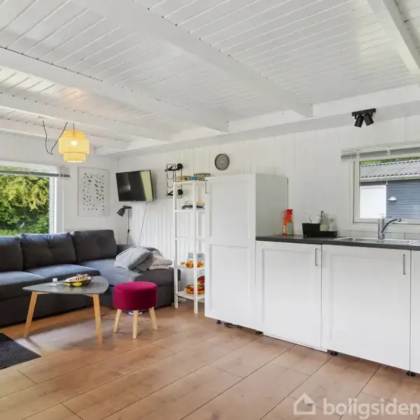 Charmerende sommerhus med skøn beliggenhed ved Karup Å Drømmer du om et hyggeligt sommerhus, med muligheden for lystfiskeri, og hvor du samtidig kan nyde naturen og roen – samtidig med at du er tæt på hverdagens fornødenheder? Dette charmerende sommerhus byder på komfort i smukke og rolige omgivelser.Sommerhuset, der er opført i 1957 og beliggende på en stor grund på 4045 kvadratmeter, fremstår både funktionelt og indbydende. Huset ligger trukket tilbage fra vejen og giver dig både privatliv og