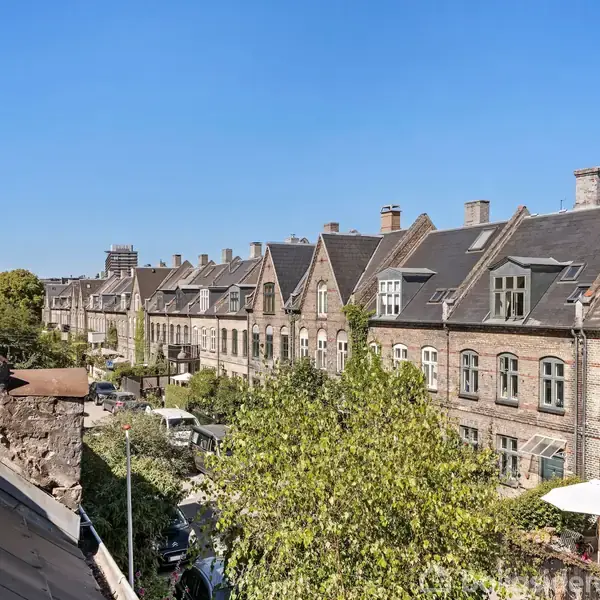 Abildgaardsgade i kartoffelrækkerne har fået sit navn fra maleren Nicolai Abildgaard, som er kendt for sin centrale skikkelse i dansk nyklassicistisk kunst og historiemaleri. Kartoffelrækkerne er de 11 små gader mellem det tidligere voldanlæg Østre Anlæg og Sortedams Sø. Husrækkerne ligger på rad og række som kartoffelbede, og for at blive i den retorik er hvert hus i bedene en kartoffel. Her er 480 kartofler på den store kartoffelmark, og de er alle plantet i slutningen af 1800-tallet på initiativ af Arbejdernes Byggeforening som svar på tidens, dårlige levevilkår. Oprindelig til 3 familier i hver kartoffel, men fra 1970erne blev det muligt at sammenlægge de små lejligheder til enfamiliehuse. Hjemmebiograf Abildgaardsgade 5 er en heldig kartoffel på 134 m2 plus kælder med både for- og baghave. Alle 5 etager er lige til at flytte ind i. Som en af de få kartofler er her udgravet kælder med hjemmebiograf. Med loft til kip er her masser af lys. Kartoffelrækkerne er en landsby i København med et særligt socialt miljø for især børn og unge. Ikke mange kvarterer i København tilbyder så trygt et levested som her. Her er derfor mange børnefamilier, her er et godt nabo- og gadeskab, og her er gode skoler, indkøb, caféer og restauranter. Og selv om vi er på Østerbro, er her altid stille og roligt som sneen, der falder. Hverdagen i kartoffelrækkerne fortæller, at vi ikke lever alene i vores egen tid, vi bærer vores historie med os. Samvær betyder alt i gaden. Legehus og fodboldmål på gaden fortæller den historie. En godtepose af landsbyer Sortedams Sø ligger for enden af gaden. For københavnerne er søerne fra Østerbro over Nørrebro til Vesterbro det samme som spadsereture, fred og ro og naturoplevelser midt i byen. Børn og voksne giver ænder og svaner mad. Der bliver kysset på bænke og holdt i hånden. Østerbro er en godtepose af små landsbyer, skæve butikker, boulevarder, svømmehal, fælledpark, caféer og restauranter og Sankt Jakobs Plads. Resten af København er lige om hjørnet med gallerierne, balletten i Det Kongelige Teater, skuespillet i Skuespilhuset, de grønne væresteder som Sankt Annæ Plads og Kongens Have. Det var såmænd bare det.