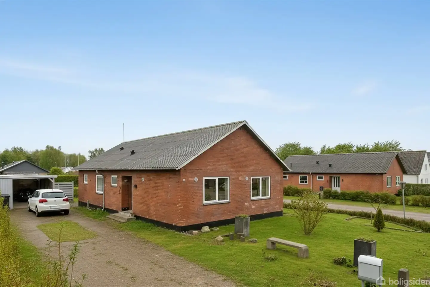 Åbent hus med tilmeldingskrav 3/2 - klik på billede - Her bydes du velkommen til en villa, der ligger som et roligt, trygt anker midt i hjertet af Over Jerstal. Villaen står som en solid ramme for både førstegangskøberen med boligdrømme og den lille familie, der ønsker nærhed til hverdagslivets vigtigste punkter. Herfra kan børnene roligt gå til byens skole og sportshal, hvor fællesskabet lever i bedste velgående. De 96 m² folder sig ud i en gennemtænkt og funktionel planløsning. Fra entréen træder du ind til både badeværelse og et soveværelse, mens stuen åbner sig som et lyst og indbydende samlingspunkt med plads til både spisebordets hverdagssamtaler og sofaens rolige aftener. Videre finder du køkkenet, hvor det tidløse inventar skaber en harmonisk ramme om madlavningen, og der er samtidig plads til en lille spiseplads. Hertil kommer et ekstra værelse, et kontor samt et praktisk bryggers med nedgang til kælderen, hvor rummelige opbevaringsmuligheder venter. Haven er overskuelig, grøn og let at holde – et fristed, hvor solen uden besvær finder sine pletter. Over Jerstal er en hyggelig landsby hvor byen gør sit for at have sociale aktiviteter bl.a. afholdes der årligt byfest. Byen har sin egen børnehave og skole der spænder fra børnehaveklasse til og med 6. klasse. Det er muligt for såvel børn, unge og ældre at kunne gå til diverse fritidsaktiviteter i byens idrætshal med tilhørende sportsplads. Derudover er der anlagt en dejlig og skøn bypark med både et fint kaffehus, hvor den medbragte kaffe kan nydes og en bålhytte hvor man kan sidde og nyde sommeraftnerne.