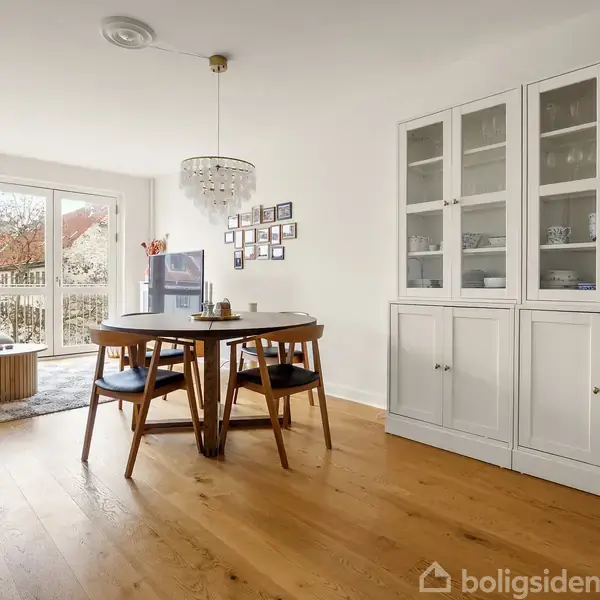 Velkommen højt til vejrs i ejendommen på 4. sal – bekvemt med elevator – hvor denne flotte og indflytningsklare lejlighed byder på et skønt lysindfald og en særdeles veludnyttet planløsning. Boligen fremstår lys og moderne med en indretning, der både er ideel for parret, den lille familie eller som delelejlighed. Fra fordelingsentréen er der separat adgang til to gode og regulære værelser, hvilket skaber optimale rammer for privatliv og fleksibel indretning.Hjertet i hjemmet er den store opholds