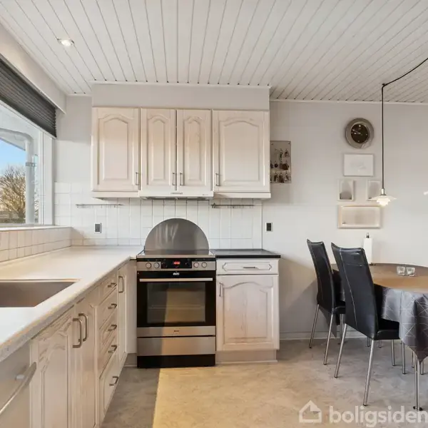 Velholdt 116m² rækkehus med 4 værelser, garage og stor have i roligt kvarter.Her præsenteres et velholdt rækkehus på 116 kvadratmeter fra 1975, beliggende på en 487 kvadratmeter stor grund. Ejendommen fremstår indbydende med en klassisk gul murstensfacade og en funktionel indretning, der imødekommer behovet for et lyst og praktisk hjem til familien.Indvendigt fordeles boligen på fire rum, der inkluderer et rummeligt opholdsrum med alrum og stue i åben forbindelse. Her lukker store vinduespartier