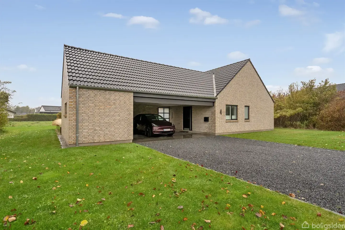 Flot nyere 1 plans villa opført i 2019 med dobbelt integreret carport og dejlig stor solrig terrasse.