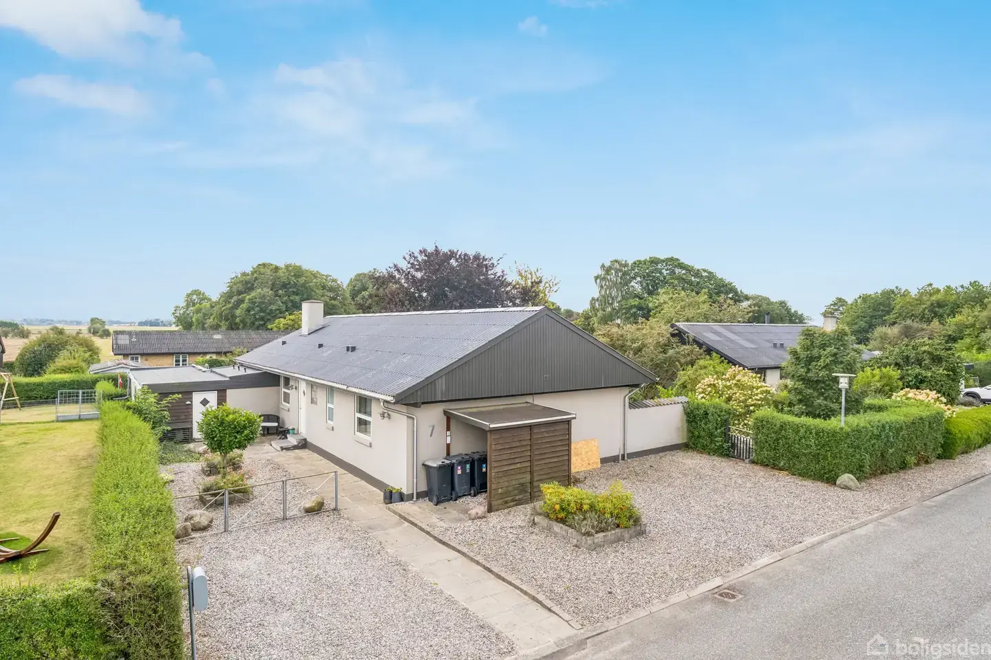 Lad boligjagten få en rolig og tryg afslutning i naturskønne Hvidsten nord for Randers, hvor denne velholdte etplansvilla venter på nye ejere. Beliggende tilbagetrukket i et lukket vænge får I her en ideel ramme for familieliv eller for par, der ønsker god plads i fredelige omgivelser.  De 144 kvadratmeter er veludnyttede og indrettet med hele fire værelser, badeværelse, gæstetoilet, bryggers og et stort, åbent opholdsrum. Her går køkken, spisestue og dagligstue op i en højere enhed – lyst og i