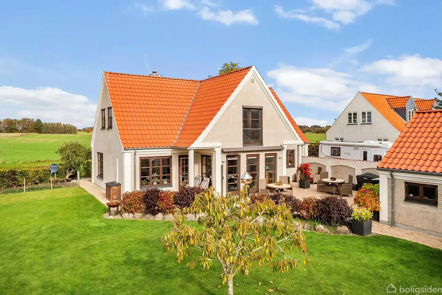 Gedigent murermesterhus med klassisk stil, kvalitet og skøn beliggenhed i Gl. Tølløse Er drømmen en bolig, hvor håndværk, kvalitet og klassisk æstetik går op i en højere enhed? Så byder denne rummelige og fuldmurede ejendom fra 2004 på alt det, man kan ønske sig – og lidt mere. Huset er opført af murermester med hele 32.000 mursten og fremstår solidt, stilrent og yderst velholdt. De smukke mahognivinduer fra Outline, klinkegulvene i stueplan, mahognigulvene på førstesalen og Invita-elementerne vidner alle om kompromisløs kvalitet. Ejendommen ligger i en lille, eksklusiv udstykning i Gl. Tølløse med flot udsigt over åbne marker. Den dobbelte murede garage med udhusplads giver både læ og privatliv til den store, sydvendte terrasse, der indbyder til uforstyrret afslapning. Haven er velanlagt, og både indkørsel og gangarealer er flot flisebelagte. Indenfor byder stueplanet på en rummelig entré, et lyst og klassisk Invita-køkken med spiseplads samt bryggers med vaskefaciliteter og ekstra bruseniche. Fra køkkenet er der adgang til spisestuen med direkte udgang til terrassen – og videre til opholdsstuen, hvor en muret pejs med nyere indsats fra 2021 skaber hyggelig stemning. Et gæstetoilet fuldender etagen. På førstesalen finder du et lyst alrum, to gode værelser samt et stort soveværelse med skabe og fransk altan. Badeværelset er rummeligt med både stor bruseniche, spabad og god skabsplads. Huset er opdateret med luft-til-vand-varmepumpe fra 2025, Genvex ventilationsanlæg og gulvvarme i hele stueetagen samt på badeværelset ovenpå – alt sammen med fokus på komfort og lavt energiforbrug. Beliggenheden er ideel midt i den smukke midtsjællandske natur, tæt på skov og blot én kilometer fra Tølløse by, hvor der findes alt fra dagligvarebutikker og skoler til station og idrætsfaciliteter. Med motorvejsforbindelser lige i nærheden når du både Holbæk, Roskilde, Ringsted og Slagelse på under en halv time. Her får du et hjem med sjæl, kvalitet og beliggenhed i topklasse – perfekt til familien, der ønsker det bedste af både by og natur.