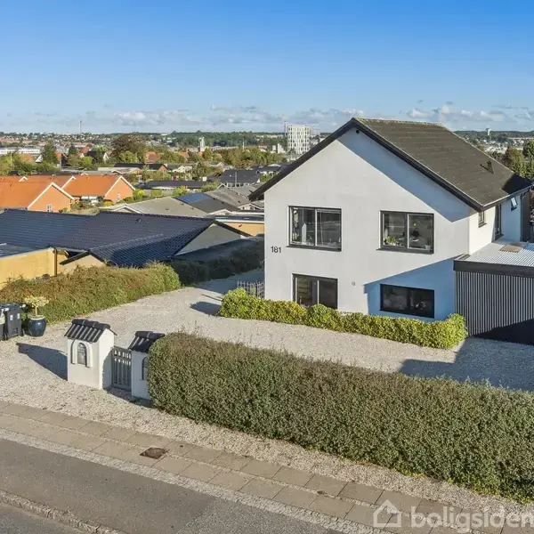 Indflytningsklar og rummelig villa med god planløsning og central beliggenhed i Kolding. På Agtrupvej 181 får du et indflytningsklart 1-familieshus i to etager, hvor hver kvadratmeter er tænkt ind i en sammenhængende og funktionel helhed. I 2025/2026 er der lagt nye, gennemgående trægulve i hele huset, som skaber et lyst og moderne udtryk og gør det nemt at flytte direkte ind uden kompromiser. Den øverste etage byder på en lys stue og spisestue med store vinduespartier, der sikrer et flot lysindfald gennem hele dagen. Hertil er der et velholdt og fuldt funktionelt køkken, badeværelse og bryggers. Fra soveværelset fortsætter boligens udsyn naturligt videre mod udestuen, hvor den imponerende panoramaudsigt over Kolding for alvor folder sig ud. I forlængelse heraf er der etableret en udendørs terrasse, hvor udsigten og solnedgangene kan nydes ugeneret og i læ. Husets to plan forbindes af en elegant trappe, der fører direkte ned i boligens underetage, der fremstår indflytningsklar med nymalet vægge og lofter samt nyanlagte gulve. Kælderen har også egen indgang og indeholder endnu et badeværelse, et køkken og tre rummelige og lyse disponible rum. Sælger har desuden etableret en terrasse med direkte udgang fra kælderen via. to store terrassedøre. Rundt om ejendommen er der gode parkeringsforhold med plads til flere biler, suppleret af en carport samt et stort værksted, der giver ideelle rammer for både hobby, opbevaring og gør-det-selv-projekter. Udenfor findes desuden en mindre græsplæne og en indbydende terrasse, hvor de lyse sommeraftener kan nydes i rolige og private omgivelser. Agtrupvej 181 er en bolig for dem, der ønsker et charmerende og indflytningsklart hjem med god plads, fleksible muligheder og en udsigt, der gør hverdagens rammer lidt større.