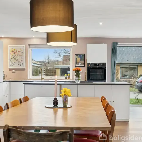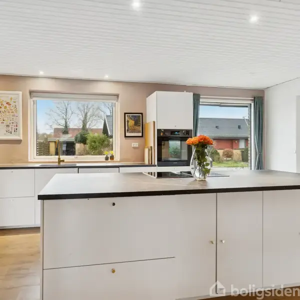Flot, moderne etplansvilla i Ikast På denne adresse i Ikast kan I gå eller cykle til alt det, I skal bruge i hverdagen og fritiden. I bor kort sagt dejligt centralt, når I rykker ind i denne etplansvilla med et stort, åbent opholdsmiljø, to toiletter og tre værelser. Stilen er nydelig, og der er masser af lys.Glæd jer til at samles i det åbne opholdsmiljø, hvor dagslyset stråler ind fra tre verdenshjørner, og hvor der er gulvvarme i husets leverum, som sikrer en behagelig komfort året rundt. Køk