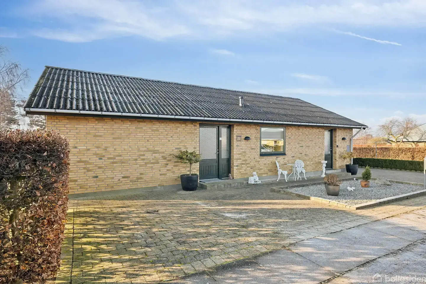 I en attraktiv og lukket udstykning udbydes dette velholdte parcelhus, som er beliggende for enden af en stille blind vej og med direkte adgang til et børnevenligt, grønt fællesareal. Boligen fremstår i flot stand med murede facader, eternittag samt termo- og energivinduer. Der er installeret solcelleanlæg, som bidrager til et lavere elforbrug, og opvarmningen sker via nyere luft-til-luft varmepumpe samt pilleovn. Indvendigt bydes du velkommen i en pæn entré med garderobe. Herfra er der adgang til et rummeligt soveværelse, som oprindeligt har været opdelt i to og nemt kan genetableres, samt yderligere et værelse. Det stilrene Vordingborg-køkken byder på god skabsplads og er i åben forbindelse med bryggerset, som har separat indgang – ideelt til dagligdagens praktiske gøremål. Køkken og bryggers er fra 2012. Fra køkkenet er der adgang til den lyse, sydvestvendte opholdsstue med udgang til en solrig fliseterrasse. Forhaven er anlagt med fliser og er nem at holde. Her er god plads til flere biler samt både carport og udhus. Haven er omgivet af hæk og giver en privat og ugeneret ramme om udelivet. Ejendommen er tilsluttet fibernet og sikrer mulighed for hurtig internetforbindelse. Beliggenheden er ideel med kort gå- og cykelafstand til Stege bymidte med butikker, caféer, biograf, bibliotek og lystbådehavn. Stege Skole samt sportsfaciliteter findes ligeledes inden for ca. 1 km. Søger du en velindrettet etplansbolig i rolige og eftertragtede omgivelser, er denne ejendom bestemt et besøg værd.
