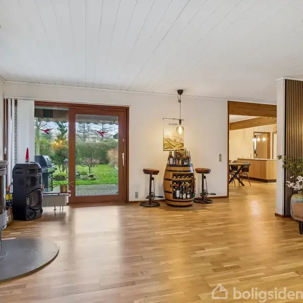 Det er et rigtigt familiehjem, der fordeler sig over hele 141 m2 i ét plan på en rolig vej i Fløng. Kort og godt får I her en villa, hvor der er godt at vokse op, for der er plads til hele familien på tværs af de tre gode værelser og ingen vej til hverken dagtilbud, skole, indkøb eller idrætsliv. I kan overtage nøglerne til en villa, der blev bygget i 1985. Charmen er intakt, selvom moderniseringsprocessen også er begyndt med nye, flotte gulve og akustikpaneler i det store alrum, som samler køkk