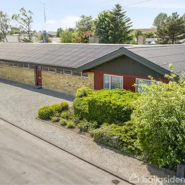 Utrolig indbydende og velbeliggende ejendom. Perfekt til dig der ønsker at drive selvstændigt erhverv tæt på familien og boligen! Ejendommen fremstår særdeles velholdt med skøn have og udearealer samt stor og rummelig bolig og gode værksteds/erhvervslokaler. Der har i mange år været drevet virksomhed med møbelpolstring, fra ejendommen. Ejendommens erhvervsareal er bl.a. fordelt på to store lokaler, der finder god anvendelse som værksted eller lager, begge med portåbning. Det ene lokale er bygget med stålspær og er af nuværende ejer blevet brugt som lager og senere selskabslokale. Det andet lokale er bygget med limtræsspær og har fungeret som møbelpolstrer-værksted for nuværende ejer Her er der også placeret en 1200 L olietank, samt en sprøjtekabine med udsugning. Derudover er der til ejendommens erhvervsdel, et butikslokale med adgang til boligens forgang, og et kontor med adgang til boligens bryggers. Når du træder ind i ejendommens bolig mødes du at et rummeligt bryggers. Her er der plads til både vaskemaskine og tørretumbler og samtidig finder du også oliefyret, der er ejendommens primære varmekilde. Fra bryggerset går du videre ind i forgangen, hvor du har adgang til alle boligens 4 værelser, samt et stort badeværelse med bruseniche, badekar, bidet og gulvvarme. Videre fra boligens forgang, møder du en entré, med indgang fra boligens nordlige facade. Fra entréen er der adgang til gæstetoilet samt køkken og stue. Køkkenet er et HTH køkken i god kvalitet og med induktionskogeplade, skabsovn, emhætte, opvaskemaskine og integreret køleskab. I køkkenet er der også spiseplads. Fra køkkenet er der også adgang til den 56 kvm. store vinkelstue, hvor du har god plads til stort spisebord og sofagruppe. i stuen er der en ældre emaljebrændeovn, fra før 2003. Ydermere er der udgang til skønt overdækket terrasseområde med retning mod syd. Hele boligen er med trælistelofter og ejendommens vinduer er løbende blevet skiftet, pånær de vinduer der er i butikslokalet. Vinduerne på nord-siden er med energiruder. Derudover er der efterisoleret på alle ejendommens flade lofter. Den store grund, på i alt 2.400 kvm., rummer både parkeringsareal foran erhvervslokalerne og en stor gårdsplads med yderligere plads til parkering. Her finder du også en carport med plads til to biler samt et indbygget udhus på 12 kvm. Ydermere er der have med tilhørende haveskur og en smuk forhave med buske og beplantning. På ejendommen er der tilkoblet bredbånd fra Yousee, som også leverer telefon og TV.