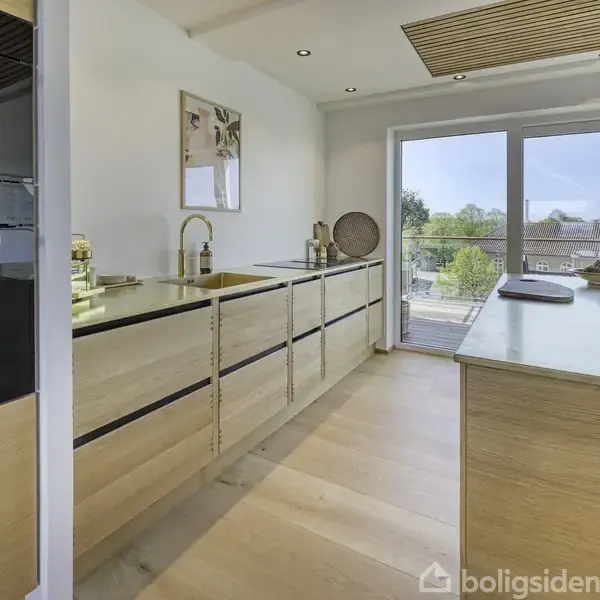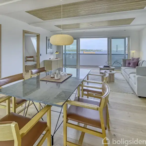 Forestil dig at vågne og gå ud på terrassen og nyd kigget ud over Lillebælt, mens byen under dig vågner i roligt tempo. Her – på toppen af Algade 26 – finder du en fuldstændig nyrenoveret lejlighed, hvor komfort, æstetik og udsigt går op i en højere enhed. Perfekt til dig, der ønsker en bekymringsfri hverdag midt i Middelfarts charmerende bymidte.Lejligheden breder sig ud med entré, tre rummelige værelser og et stort, lækkert badeværelse med bruseniche – plus et ekstra gæstetoilet. Det åbne køkk