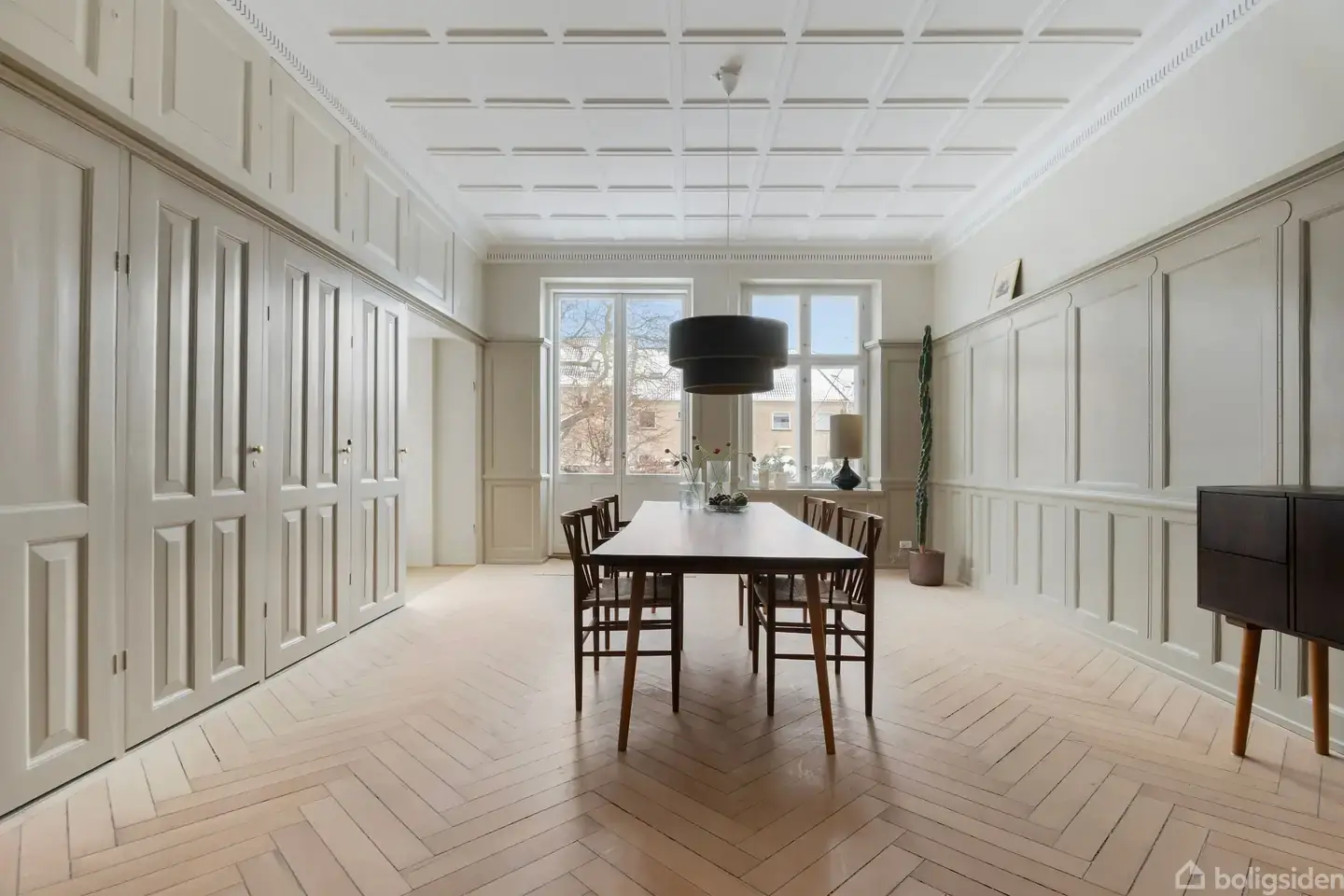 Allehelgensgade, ja, der er noget katolsk i det vejnavn, det er nemlig den dag, hvor vi ærer alle heglerne og de døde ved at tænde lys på kirkegårdene den første søndag i novembermørket. En smuk tradition i vores kristne kultur til erindring og eftertanke. Alt er lækkert Midt i Roskilde bare små 300 meter fra Domkirken står et byhus fra 1895. Det er bygget af en snedker til snedkeren selv, og huset har været brugt som showroom for det arbejde, hvor snedkeren præsenterede sit mesterskab: gulvene. Små 130 år efter ligger de her endnu, gulvene, smukt designet i parket i hver sit rum til inspiration og eftertid. Det er til at forstå, for æstetik og kvalitet har det med at holde meget længere end de mennesker, der byggede det. Alt er renoveret, det smukkeste Kvänumkøkken, det fineste badeværelse med ’Made a Mano’ håndmalede klinker, alt er lækkert. Her er ikke meget vedligeholdelse de næste mange år. 349 etagemeter, hvor de 121 m2 ligger i underetagen. Værsartig, som vi siger på gammeldansk, når vi betror noget til en anden. København på 20 minutter Matriklen i Allehelgensgade er på 705 m2 med en have så stille og rolig, at man kan høre, når fuglene trækker vejret. Her er bevaringsværdige træer, der kaster skygger om sommeren. Gågaden med caféerne, restauranterne og de lækre butikker er et par minutter væk. Og med Boserup Skov lige uden for byen og fjorden lige om hjørnet fylder naturen en del i Roskilde. Huset er ideelt til børnefamilien, som vægter æstetik lige så højt som praktik. For det er nemt at bo her, hverdagens logitik er på plads med toget til København på 20 minutter, institutioner og skoler er få gåminutter uden for døren. Roskilde er et godt eksempel på en by, som siden middelalderen altid har forstået at forny sig, altid at bringe sin egen fortid med ind i nutiden.