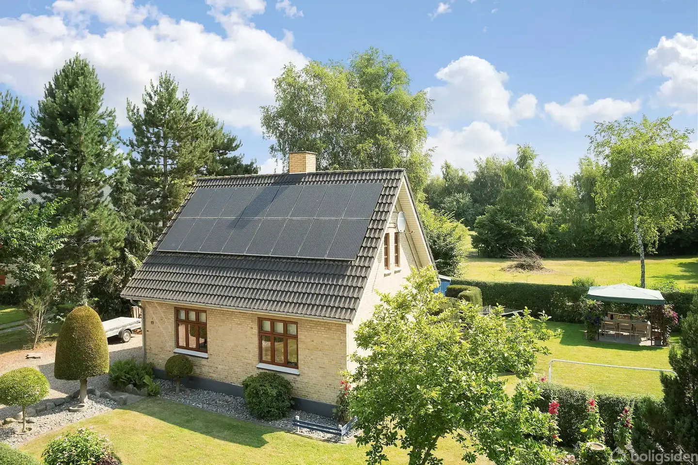 Denne solide og velholdte murstensvilla er beliggende i udkanten af Allested, mindre end 20 minutters kørsel fra Odense og motorvejen. Ejendommen har netop fået installeret nyt gasfyr. Boligen har mahogni vinduer fra 2010 og betonstenstag fra 2012 og fremtræder særdeles velholdt. Der er monteret solceller - ligeledes i 2012 - der giver et godt tilskud til ejendommens energiforbrug. Indeholder: Entre med trappe til 1. salg, mindre køkken, dejlig stue med plankegulv og brændeovn, soveværelse, bryggers/baggang, badeværelse og fyrrum med naturgasfyr. 1. sal indeholder hygge stue der evt. kan indrettes til værelse, og dejligt stort værelse. Derudover carport, værksted, flere skure/overdækninger og velanlagt og hyggelige have, der også har en god og ugeneret fliseterrasse. I Allested-Vejle er der der folkeskole, DagligBrugs samt flot nyere fritidscenter samt off. trafik.