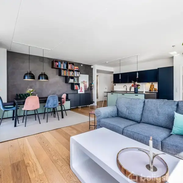 Velkommen til Alliancevej 8B, 2. 1. En sjældent udbudt og indflytningsklar lejlighed, hvor lys, luft og vandudsigten spiller hovedrollen. Her får du hele tre soveværelser, to skønne altaner og en imponerende udsigt til havneløbet fra samtlige rum. Alt sammen midt i det pulserende og maritime miljø i Sydhavnen. Lejligheden imponerer med et stort og indbydende køkkenalrum i åben forbindelse med stuen, hvor brede vinduespartier trækker dagslyset helt ind og sikrer en konstant visuel kontakt til vandet. Køkkenet er både moderne og funktionelt med god skabsplads og lækre materialer, et naturligt samlingspunkt, hvad enten hverdagen står på madpakker eller middagsselskab. De tre værelser er alle regulære, lyse og har vandudsigt fra alle rum, hvilket gør dem ideelle som børneværelser, kontor eller soveværelse. Badeværelset er rummeligt og velindrettet med separat bruseniche, vaskesøjle og god plads til opbevaring. To altaner giver mulighed for at nyde både morgensolen og aftensolen, her kan du sidde i ro og mag og følge livet på vandet, høre mågerne kalde og se bådene glide forbi. Det er ægte udeliv midt i byen. Ejendommen er opført i 2017 og fremstår både moderne og velholdt. Her er gulvvarme i hele lejligheden for optimal komfort året rundt, og som en ekstra fordel er der mulighed for at tilkøbe parkeringsplads i ejendommens kælder, en eftertragtet bekvemmelighed i dette område. Beliggenheden på hjørnet af Alliancevej er noget ganske særligt. Du bor i første række til vandet og tæt på alt det, der gør Sydhavnen til et af Københavns mest attraktive områder, hyggelige caféer, indkøbsmuligheder, havnebad og grønne oaser lige om hjørnet. Der er desuden nem adgang til resten af byen via metro, havnebus eller på cykel, og du når Indre By på få minutter. Her får du en bolig, der kombinerer moderne funktionalitet, sjæl og en uovertruffen beliggenhed ved vandet.