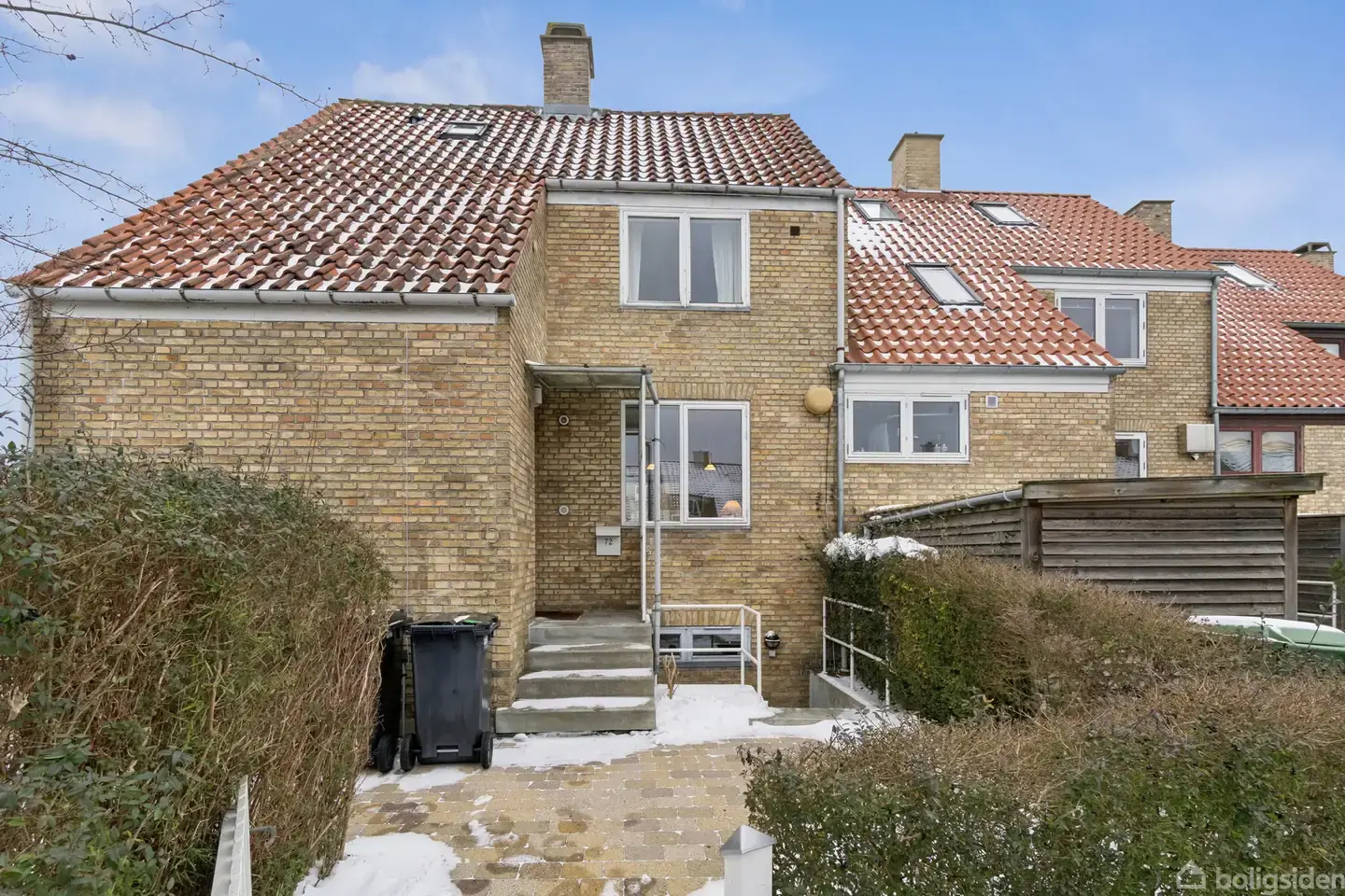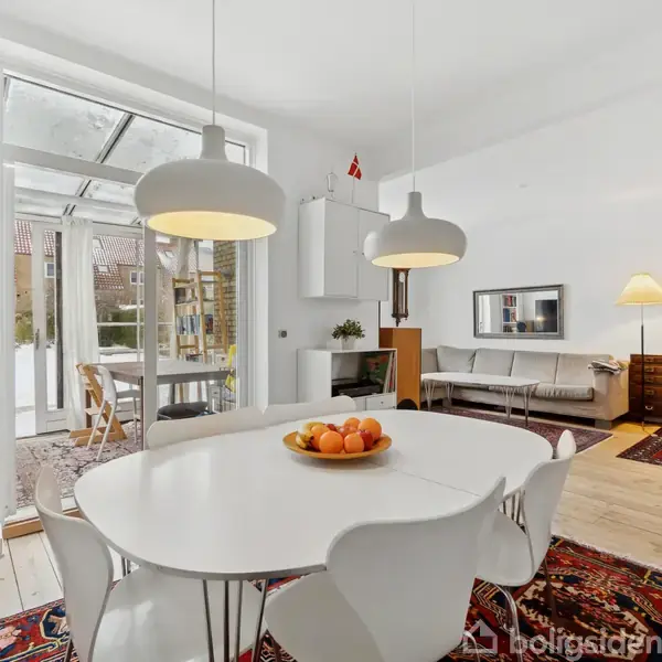 Arkitekttegnet enderækkehus i DyssegårdDet var arkitekterne Kay Fisker og Svenn Eske Kristensen, der slog stregerne til dette elegante enderækkehus i Dyssegård. De selvsamme arkitekter har tegnet det ikoniske byggeri Dronningegårdem i Indre By, og begge steder bemærkes det ufravigelige fokus på funktion som bærer af æstetik. Det har i dette tilfælde resulteret i en interessant bolig på tværs af tre velkomponerede etager, og dertil følger en skøn, solrig have og en adresse, der får hverdagen til