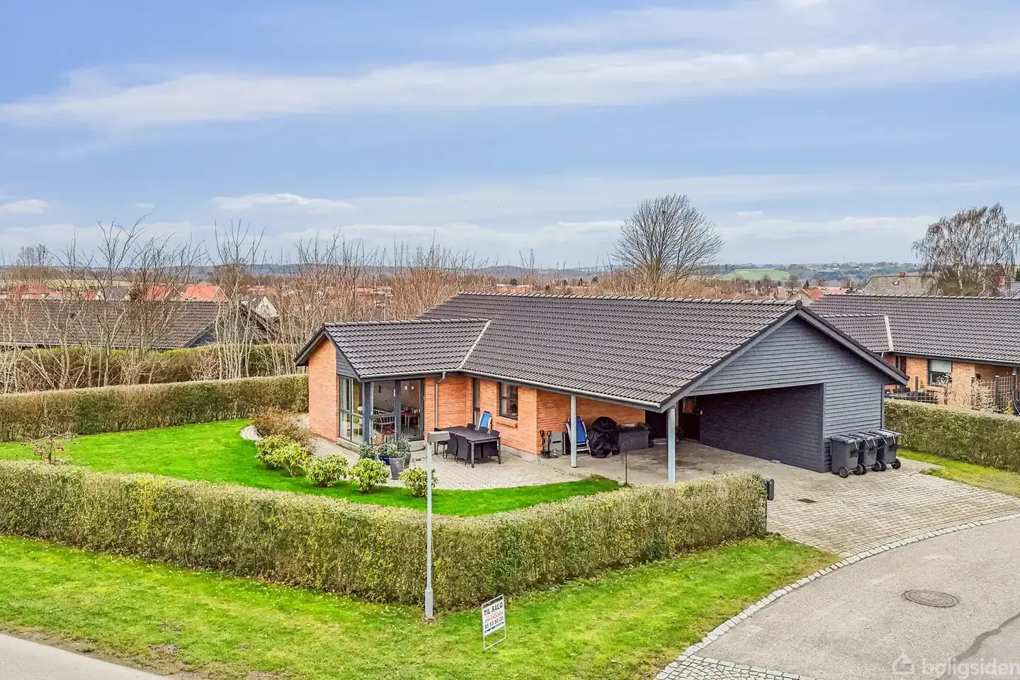 Velkommen til Amelies Vej 28 - en yderst velholdt og indflytningsklar etplansvilla fra 2008, perfekt placeret i det rolige og attraktive Lund. Her bor du på en ugeneret vej, tæt på grønne områder, skolen, indkøb og med let adgang til både Horsens og motorvejen.Boligen byder på 108 veldisponerede m² samt carport og integreret udhus på i alt 44 m²Den funktionelle planløsning giver en tryg og velfungerende ramme for både par, en mindre familie eller seniorer, der ønsker en overskuelig bolig med min