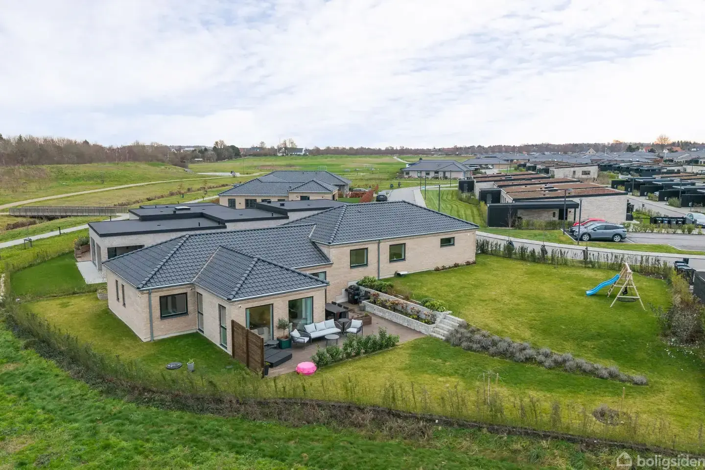Velkommen til denne nybyggede villa fra 2023, beliggende i det eftertragtede Ullerødbyen. Med et boligareal på hele 179 kvadratmeter fordelt på to forskudte plan, byder denne ejendom på en unik kombination af klassisk design og moderne funktionalitet. Huset er indflytningsklart og perfekt for dem, der ønsker at flytte direkte ind uden bekymringer. Villaen imponerer med sine rummelige værelser og det åbne køkken/alrum ligger i direkte forbindelse med stuen, hvilket skaber en flydende overgang mellem madlavning og afslapning. Dette gør det nemt at underholde gæster eller holde øje med børnene, mens du laver aftensmaden. De forskudte plan giver huset karakter. Den gennemtænkte planløsning sikrer desuden optimal udnyttelse af pladsen samt masser af opbevaringsmuligheder. Udendørs venter en fantastisk have anlagt i flere niveauer. Her er rigelig plads til børnenes trampolin eller fodboldmål samt områder dedikeret til grillhygge på sommeraftenerne. Haven tilbyder et frit udsyn over området, hvilket skaber en følelse af ro og åbenhed. Beliggenheden i Ullerødbyen betyder adgang til et charmerende lokalsamfund med gode skoler, daginstitutioner og indkøb lige ved hånden. Denne villa repræsenterer den perfekte mulighed for familier eller par, der søger et hjem hvor stil møder funktionalitet.
