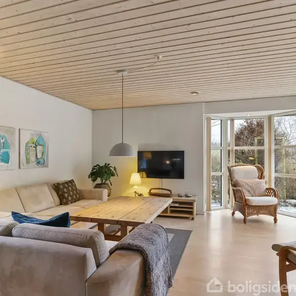 På Amstrup Bakker 5 i Ulstrup ligger denne indbydende villa, hvor moderne arkitektur forenes med de naturrige omgivelser og danner rammen om et hverdagsliv præget af kvalitet og komfort. Ejendommen fremstår med en gennemtænkt træfacade, som smelter harmonisk sammen med det grønne nabolag, og grunden er dejligt placeret på en lukket, rolig vej – perfekt for dig, der vægter tryghed og fred samtidig med nem adgang til hverdagens fornødenheder.Indenfor venter 134 m², udnyttet til fulde med fire være
