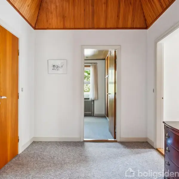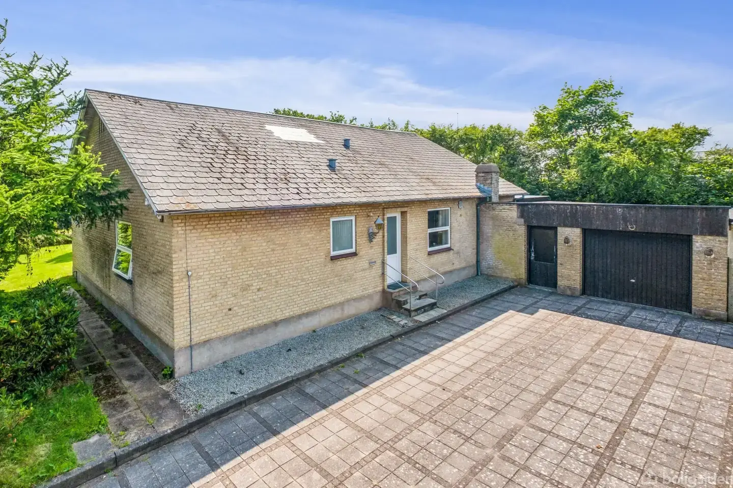 Skønt centralt beliggende gulstensvilla med skifertag. Virkelig et spændende og meget velbygget hus, hvor der i 2016 er isat nye vinduer i træ/alu, ligesom opvarmningen er ændret til en luft-til-vand varmepumpe, samme år. Skøn have og tilhørende muret garage og tilhørende hobbyrum. Villaen er med nyere tæpper og har kun været anvendt som feriehus. Der er ikke bopælspligt. Villaen er indrettet i 1 plan med entre hvorfra du kommer ind i en meget flot højloftet mellemgang/fordelingsgang. Der