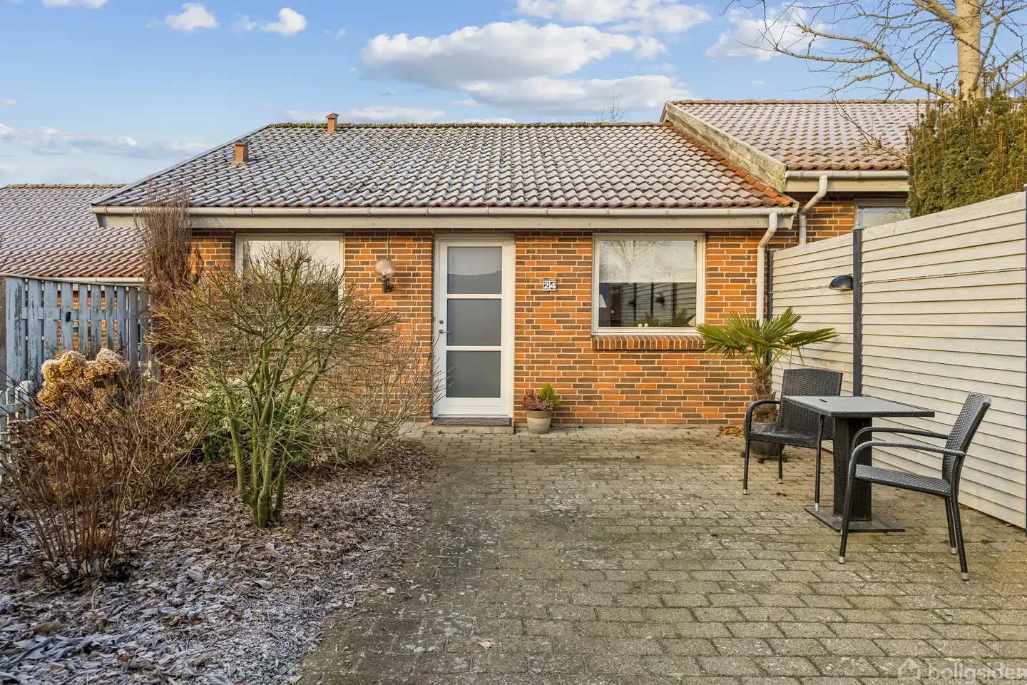 På Anderuplunden 24 udbyder Estate Tarup & Næsby nu et godt og gedigent rækkehus, som tilgodeser alle jer, der gerne vil bo overskueligt i trygge rammer. I triller ind på små, lukkede veje, hvor rødstensrækkehuse ligger side om side. Bilen parkerer I i carporten med tilhørende udhus, og herfra fortsætter I ad den flisebelagte forhave med fin beplantning, inden nøglen drejes i døren til 63 veludnyttede m2. Entréen byder jer velkommen og leder videre til et køkken med plads til en hyggelig spise