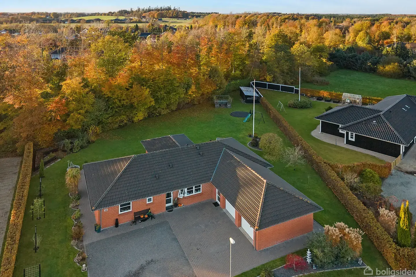På Anemonevej 16 finder I en villa, der på alle måder er skræddersyet til børnefamilien. Huset er opført i 2008 og fremstår virkelig pænt og indbydende; og vigtigst af alt, så fungerer planløsningen bare.Hjertet af hjemmet er det store køkken-alrum, hvor I kan være sammen uden at være i vejen for hinanden. Her er plads til madlavning, snak om dagen der gik og lektier ved bordet. Franske døre åbner op til stuen, hvor der er masser af lys og rum til en stor sofa og weekendhygge med dyner og popcor