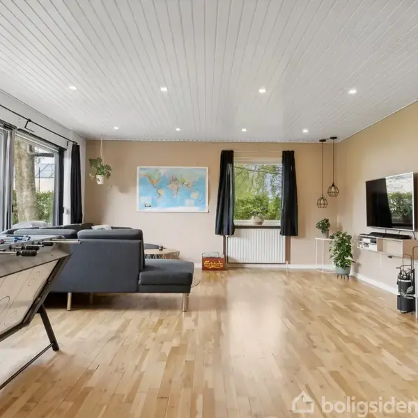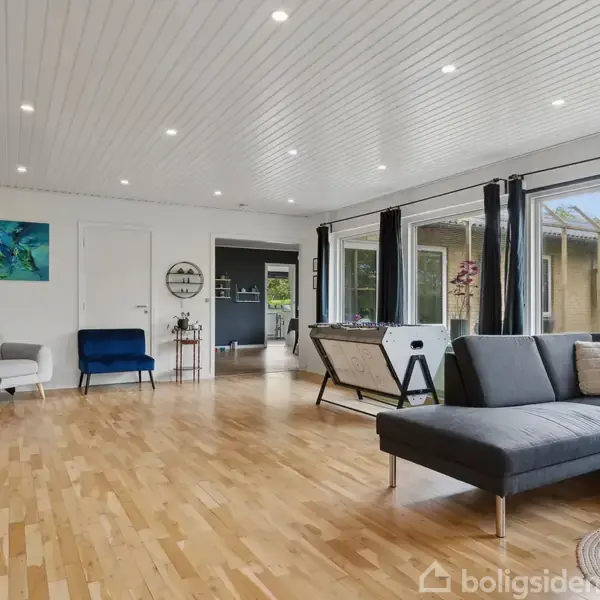 Denne villa, der er placeret i hjertet af Durup, tilbyder en imponerende størrelse på 192 kvadratmeter bolig. Den består af 4 velproportionerede værelser, en storslået stue, spisestue og køkken. Derudover findes der et bryggers, et badeværelse og et gæstetoilet. Villaen har også en indbydende entré. Denne attraktive ejendom er ideelt placeret i nærheden af alt, hvad du kunne ønske dig. Beliggenheden er perfekt for dem med børn, da den ligger tæt på både skole og børnehave. Desuden er indkøbsmuli