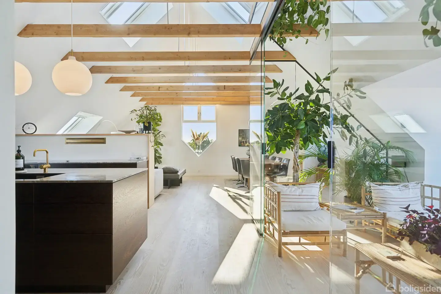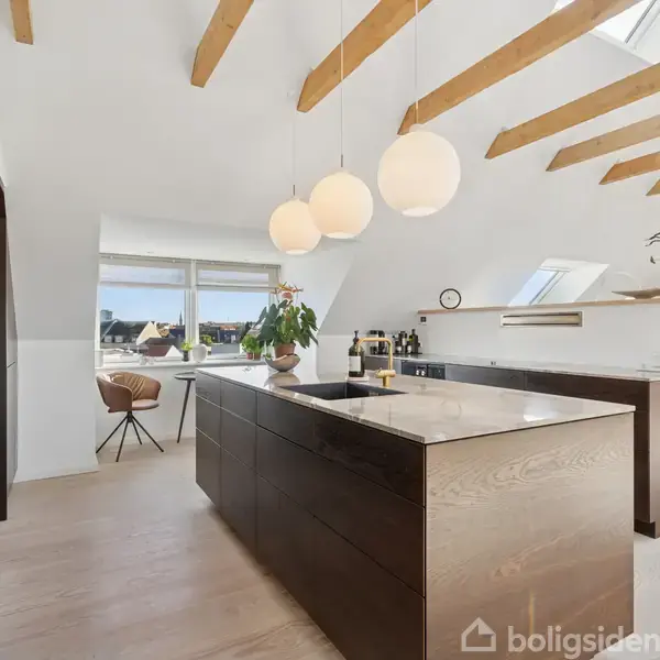 Eksklusiv, unik og gennemført lejlighed med udsigt til Ansgar Kirke og Munke MosePå øverste etage i en velholdt ejendom midt i Odense finder du denne fantastiske, femværelses lejlighed, som er spækket med lys og eksklusive materialer. Boligen blev totalrenoveret i 2019 med fokus på kvalitet og gennemtænkte løsninger, og resultatet er et hjem, der kombinerer æstetik, komfort og en enestående udsigt over Ansgar Anlæg, Gerthasminde og Munke Mose. Der medfølger to kælderrum og en privat garage samt
