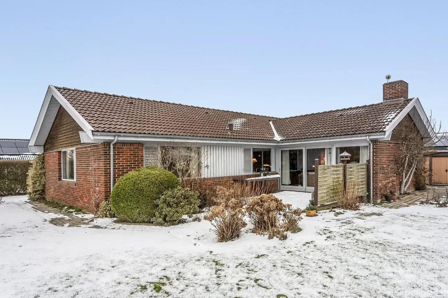 Her udbydes en særdeles velholdt og gennemtænkt villa i hjertet af Ejby – opført af nuværende ejer i 1976 og passet med stor omhu lige siden. Allerede udefra præsenterer boligen sig flot med rødbrune mursten og brunt betontegltag, der giver et klassisk og tidløst udtryk.Man bydes velkommen via et overdækket indgangsparti, som leder ind i en rummelig entré med god plads til hverdagens overtøj og sko. Herfra er der adgang til en privat forældreafdeling – et stort plus – med walk-in-closet og eget