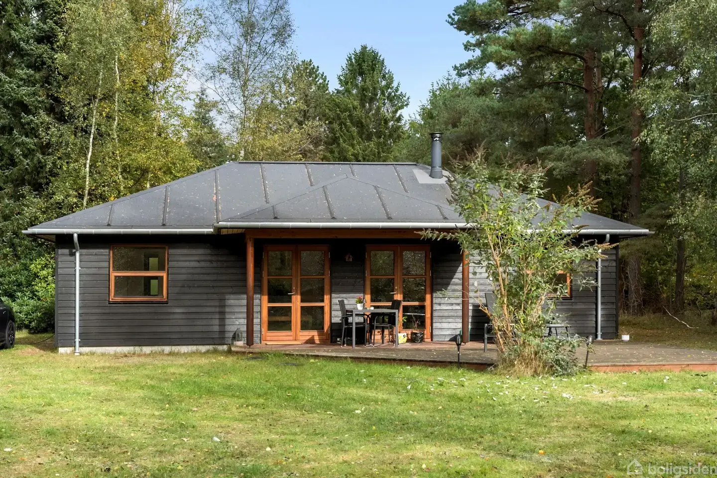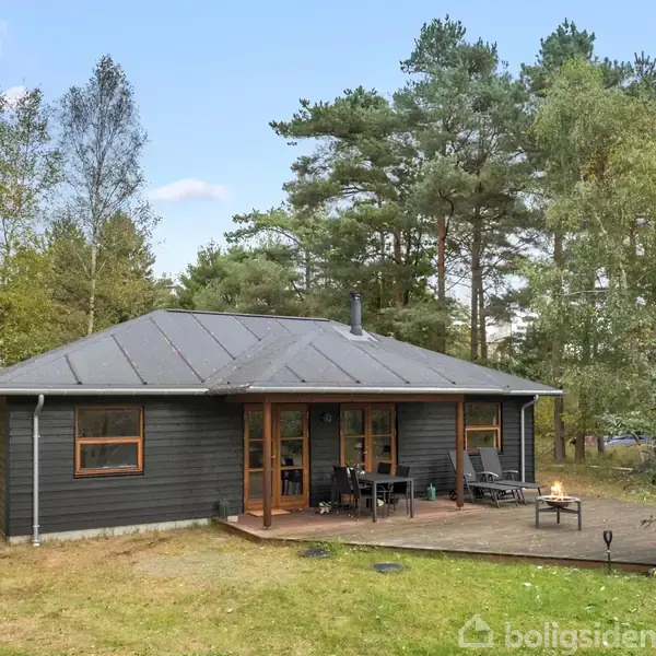 Åbent hus med tilmeldingskrav 1/2 - klik på billede - Dejligt sommerhus på stor, naturskøn grund tæt på strand og by Dette indbydende sommerhus fra 2013 ligger på en stor, grund på hele 1.551 m² – omgivet af smuk natur og med kort afstand til både strand, by og fredede naturområder. Sommerhuset er på 88 m² og fremstår lyst, velholdt og moderne med en god planløsning. Her bydes du velkommen i en entré med adgang til et pænt badeværelse med bruseniche og skabe. Huset rummer desuden et soveværelse med indbyggede skabe samt to gode værelser – ideelle til familie og gæster. Det lyse opholdsrum kombinerer stue og spisestue i ét med brændeovn, klinkegulv og udgang til en skøn overdækket terrasse, der fortsætter ud i en stor, åben træterrasse – perfekt til solrige dage og hyggelige aftener. Det nydelige, hvide køkken ligger i åben forbindelse med stuen og har masser af skabsplads. Til ejendommen hører desuden en stor garage og et praktisk udhus. Beliggenheden er helt ideel – centralt placeret mellem strand og by, omgivet af plantage og tæt på et fredet fuglereservat. Her er fred og ro, men stadig kun ca. 20 minutters gang til en af Danmarks bedste badestrande. Et dejligt og velindrettet sommerhus i rolige, naturskønne omgivelser – perfekt til både afslapning og aktiv ferie.