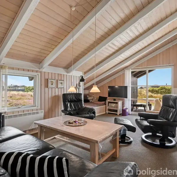 På Arvidvej 268 i Bjerregård finder I dette hyggelige og velholdte sommerhus, som ligger på en skøn naturgrund kun 400 meter fra det brusende Vesterhav. Sommerhuset fremstår lyst og indbydende med en god indretning og plads til 6 personer fordelt på 3 værelser med tilhørende hyggelig alkove i stuen. Opholdsrummet er husets naturlige samlingspunkt med komfortable møbler og brændeovn. Badeværelset er moderne og funktionelt med gulvvarme og ovenlysvindue, og huset er desuden udstyret med både vaske