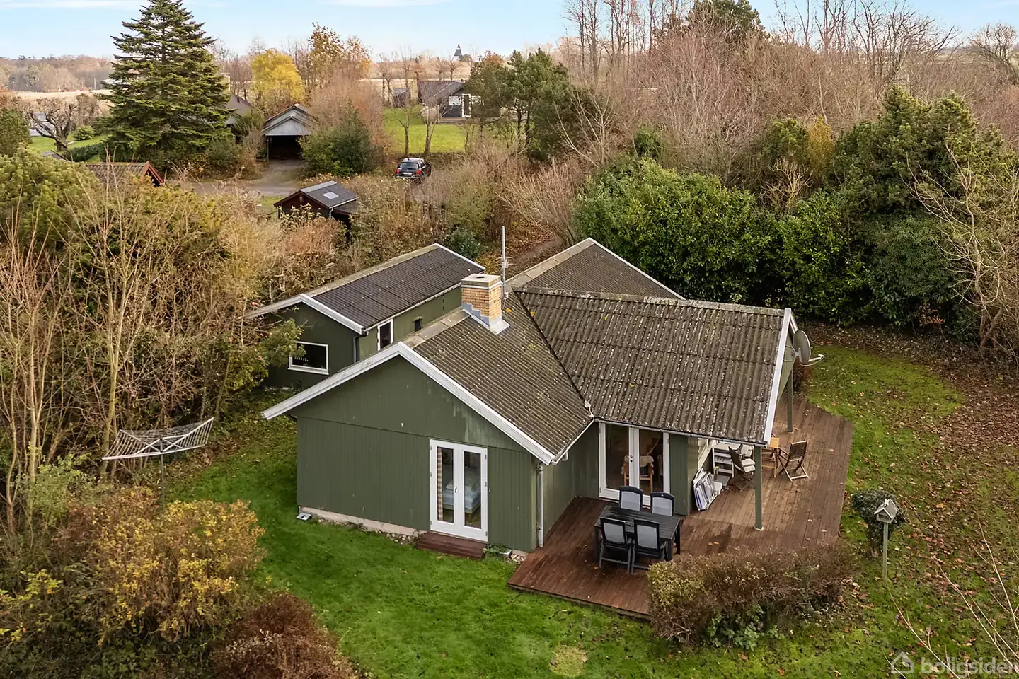Stilrent sommerhus med moderne finish i grønne rammerEr der noget mere tillokkende end at søge tilflugt i et af Solskinsøens fritidshuse, når den står på ferie og fortjent fritid?På Askelundsvej 30 bevæger vi os mod Listed i et sommerhusområde vest for Svaneke, hvor man har gjort en stor indsats for ikke at lade de praktiske elementer sakke bagud i forhold til komforten, bare fordi der er tale om en fritidsbolig.I stedet har man nænsomt istandsat og opdateret, så man bag den grønmalede træbeklæd