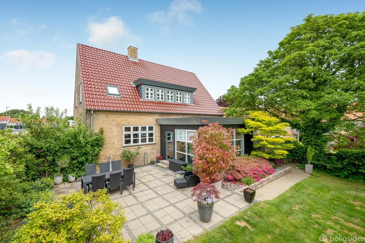 Denne charmerende murermestervilla er en arkitektonisk perle, beliggende centralt i Vejen by. Villaen kombinerer klassisk håndværk med moderne detaljer og er perfekt til familier, der ønsker både plads, stil og en central beliggenhed.Villaen er opført i smukke gule mursten og har et elegant rødt tegltag, der afspejler husets høje kvalitet og tidløse design. Den velholdte facade byder på klassiske detaljer som en buet kvist og symmetriske vinduespartier, der tilføjer charme og karakter.Når I træd