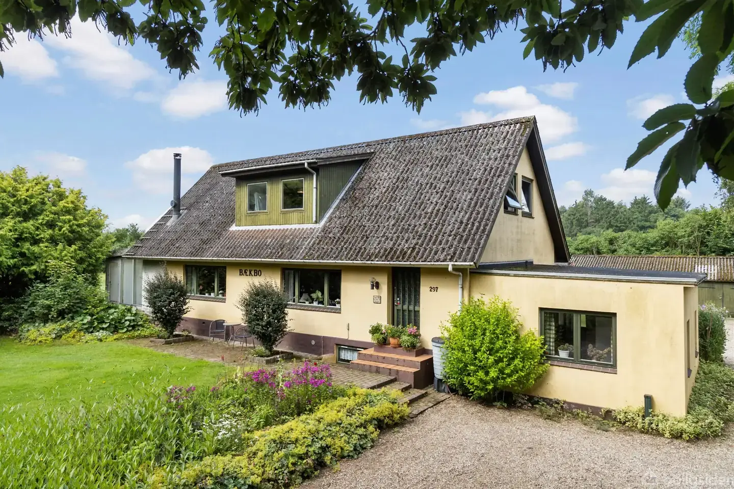 Åbent hus med tilmeldingskrav 3/2 - klik på billede - Man kunne sagtens argumentere for, at landvillaen er den ideelle boligform. I får landlivets natur og stilfærdighed, men slipper samtidig for enorme jordtilliggender og et uoverskueligt antal udhuse. I den forstand er der balance i tingene på Assensvej 297, hvor I finder denne ejendom. Boligen er hyggelig, haven er stor, og mod nord grænser grunden direkte op til en klukkende bæk. Lad os derfor kigge nøgternt på ejendommens bestanddele. Dels er der selve villaen, som er en klassisk sag fra 1947, og derudover får I et enkelt udhus. Med sine 116 m2 hører sidstnævnte dog til de større af slagsen, så muligheder løber I næppe tør for. Begge bygninger ligger samlet om gårdspladsen, som dog kun udgør en lille del af den 5.285 m2 store matrikel. I den forbindelse er grunden trekantet, og I kan sagtens anlægge folde til løsdrift i den hyggelige sydspids. Herefter bør I kigge nærmere på boligen, som byder på 181 m2 i halvandet plan. Til en børnefamilie anno 2025 er pladsen helt ideel, og praktiske rum som vaskerum og værksted er placeret i kælderen, som er på 36 m2. Udvalgte moderniseringer vil givetvis komme på tale, men planløsningen er tidssvarende og rigtig god. Således finder I opholdsrum i stueplan, mens førstesalen er indrettet som værelsesafdeling. Tre af slagsen får i, og det ene har udgang til skøn svalegangsaltan. Et badeværelse er også på plads, mens stueplan rummer et gæstetoilet. I småtingsafdelingen får I desuden viktualierum og kontorplads ved trappen, men det er stuen og køkkenet, som er de egentlige højdepunkter. Rummelighed er nøgleordet, så indret roligt køkkenet med et spisebord – eller dæk op til de store familiefester i stuen. En ekstra sidegevinst er udestuen, som giver jer 33 bonuskvadratmeter i sommerhalvåret. Og dog, for med brændeovn kan sæsonen uden videre forlænges i begge ender. I øvrigt er man ikke på herrens mark, selvom man bor på landet. Brylle, Bellinge og Fangel ligger ganske tæt på, så I kan regne nogle af Odenses mest populære satellitbyer til jeres nærområde. Det betyder også, at I har samtlige fornødenheder inden for rækkevidde. Kontakt os allerede i dag for at høre nærmere.