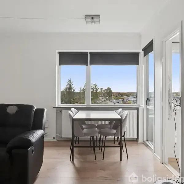 "SOLHØJ". Flot 1 1/2 vær. med udsigt, altan og elevator! BEMÆRK DE LAVE EJERUDGIFTER! Parker bilen på parkeringspladsen og tag elevatoren direkte op på øverste etage til denne flotte mindre lejlighed med altan og den skønneste udsigt. Her er bl.a. flotte nyere gulve, flot nyere køkken m.v. Lejligheden indeholder, entré, badeværelse med bruser, dejlig lys stue med den skønneste udsigt og udgang til den fine altan samt alkove med plads til sengen. Lejligheden har brugsret til gode fællesfaciliteter med fælles vaskeri, cykelrum, kælderrum m.v.
