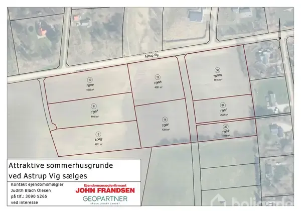 Sommerhusgrunde i naturskønt område ved Astrup Vig – gåafstand til LimfjordenNu udbydes 8 attraktive sommerhusgrunde beliggende i det fredelige og naturskønne område Astrup Vig i Skive Kommune – kun en kort gåtur fra Limfjorden.Grundene varierer i størrelse, hvoraf hele 6 ud af de 8 grunde er over 4.200 m². Her er rigeligt med plads til både privatliv, leg og landskabelige omgivelser. De sidste to grunde er en smule mindre, men stadig med god plads til at realisere sommerhusdrømmen.Området byder