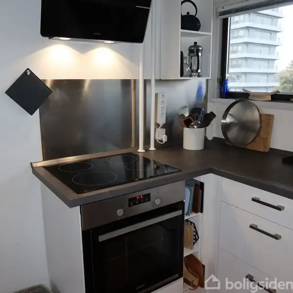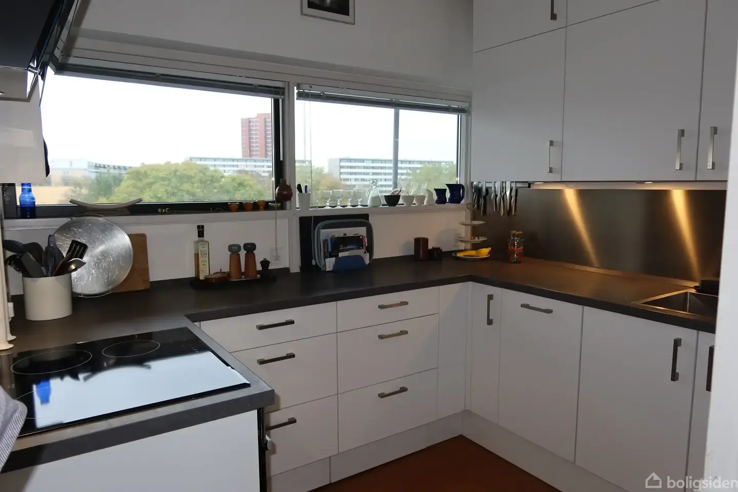 Lejligheden fik nyt køkken i 2021Du skal min. være 40 år for at bo her og har du hjemmeboende børn, skal de min. være 15 år... Ring eller SMS for en fremvisning til 28 40 89 70 3ér på 5. sal med elevator til dørenEntre / hall med indbyggede skabe. Fra entreen er der indgang moderniseret badeværelse med toilet, håndvask, bruseniche og håndklædevarmer. Køkkenet er nyt fra 2021 og er pænt og velfungerende. Stor stue, som kan deles op i stue og værelse. Soveværelse med skabsvæg. Der er udgang til s