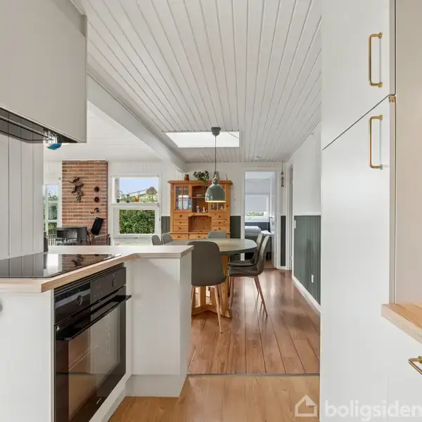 Charmerende fritidshus med lyst alrum, stor træterrasse og ro.Når du træder ind ad døren til dette charmerende fritidshus, fornemmer du straks atmosfæren af ro og samvær. Her er plads til at trække gardinet fra og lade dagens lys fylde rummet — det er et hjem, hvor weekender og ferieminder kan få rodfæste. Planløsningen er enkel og funktionel: Et stort alrum hvor et nyere Invita køkken fra 2025, spiseplads og stue smelter sammen, tre gode soveværelser og et pænt badeværelse, som også er renovere