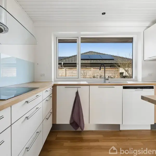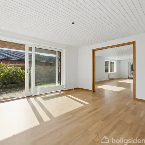 Familievilla i ét plan med plads og karakter Her i Hvidovre ligger denne rummelige etplansvilla med gode rammer for den store familie. Boligen fremstår i gennemgående god stand og har flere tidstypiske detaljer, der tilfører huset både funktionalitet og karakter. Samlet set et hjem med plads, historie og en indretning, der gør hverdagen let at få til at hænge sammen. Køkkenet er klassisk indrettet og ligger side om side med spisestuen, kun adskilt af en skydedør. Den store stue giver plads til